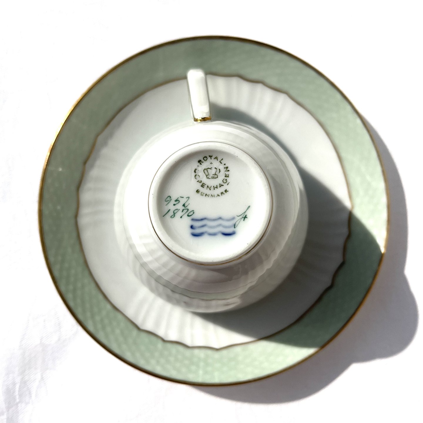 Royal Copenhagen, Green curved, Coffee cup # 952/1870, 7cm high, 1st grade * Perfect condition *