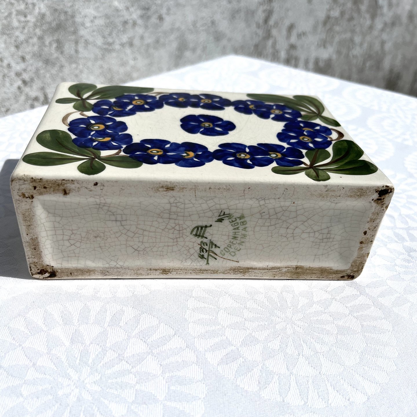 Aluminia, Vase with flowers # 433/117, 15.5cm wide, 12cm high, 5.5cm deep, Design Christian Joakim * Crackled and without lid *