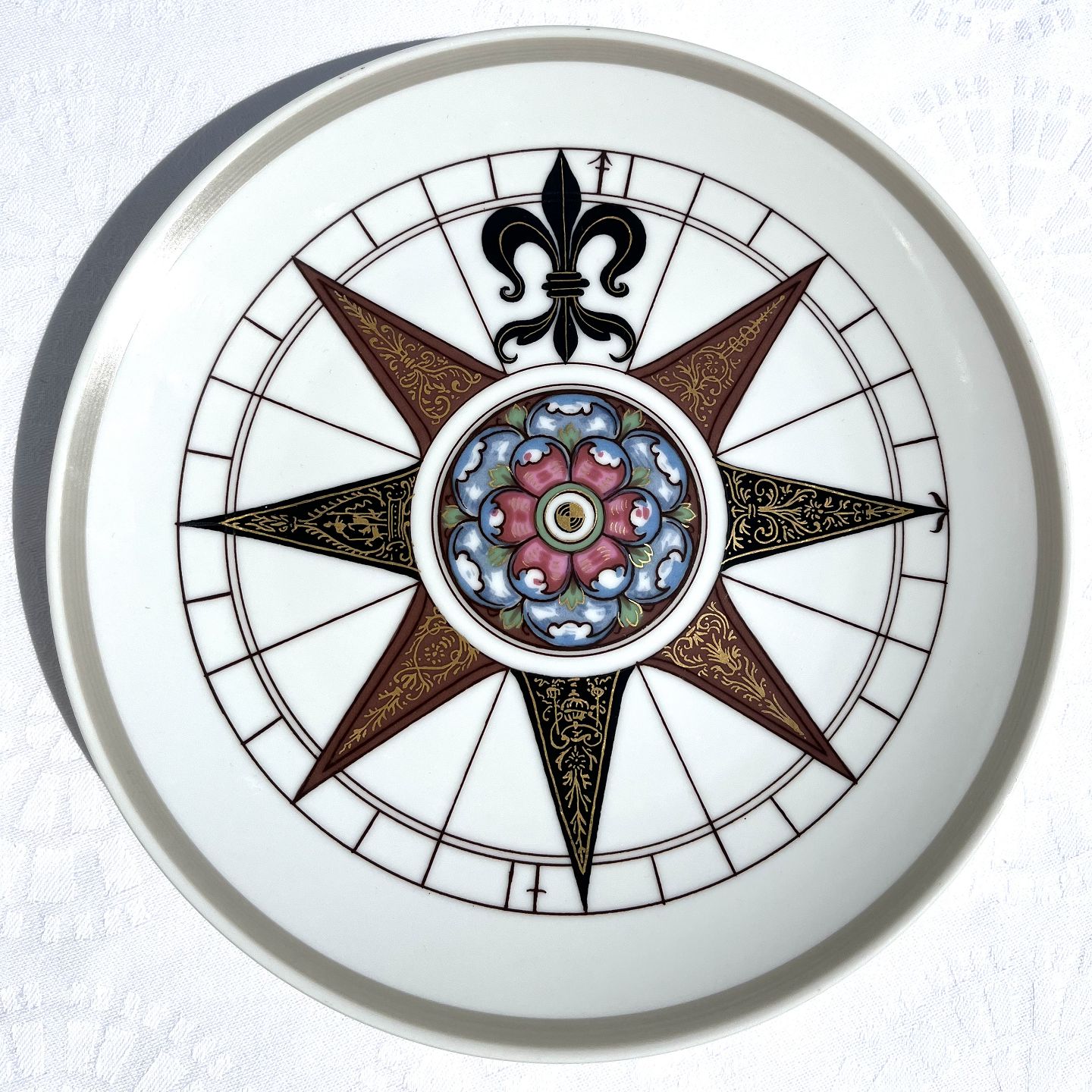 Royal Copenhagen, Gossip Compass, Cabin Compass, 1980, 20.5 cm in diameter, Inscription: Christian IV, s ship compass 1595 after original in the Danish kings' chronological collection at Rosenborg Castle * Perfect condition *