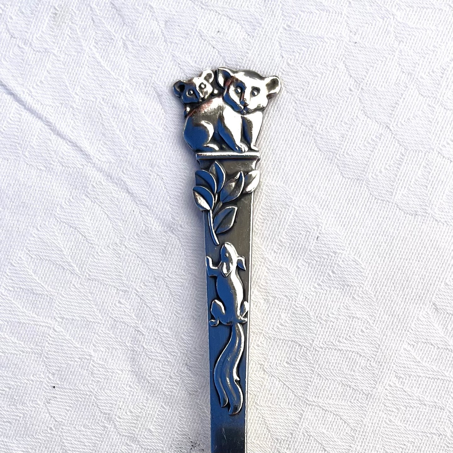 Children's spoon with 3 animal figures and branch. silver-plated from Cohr Sølvvarefabrik, length 15 cm. Nice used condition.