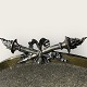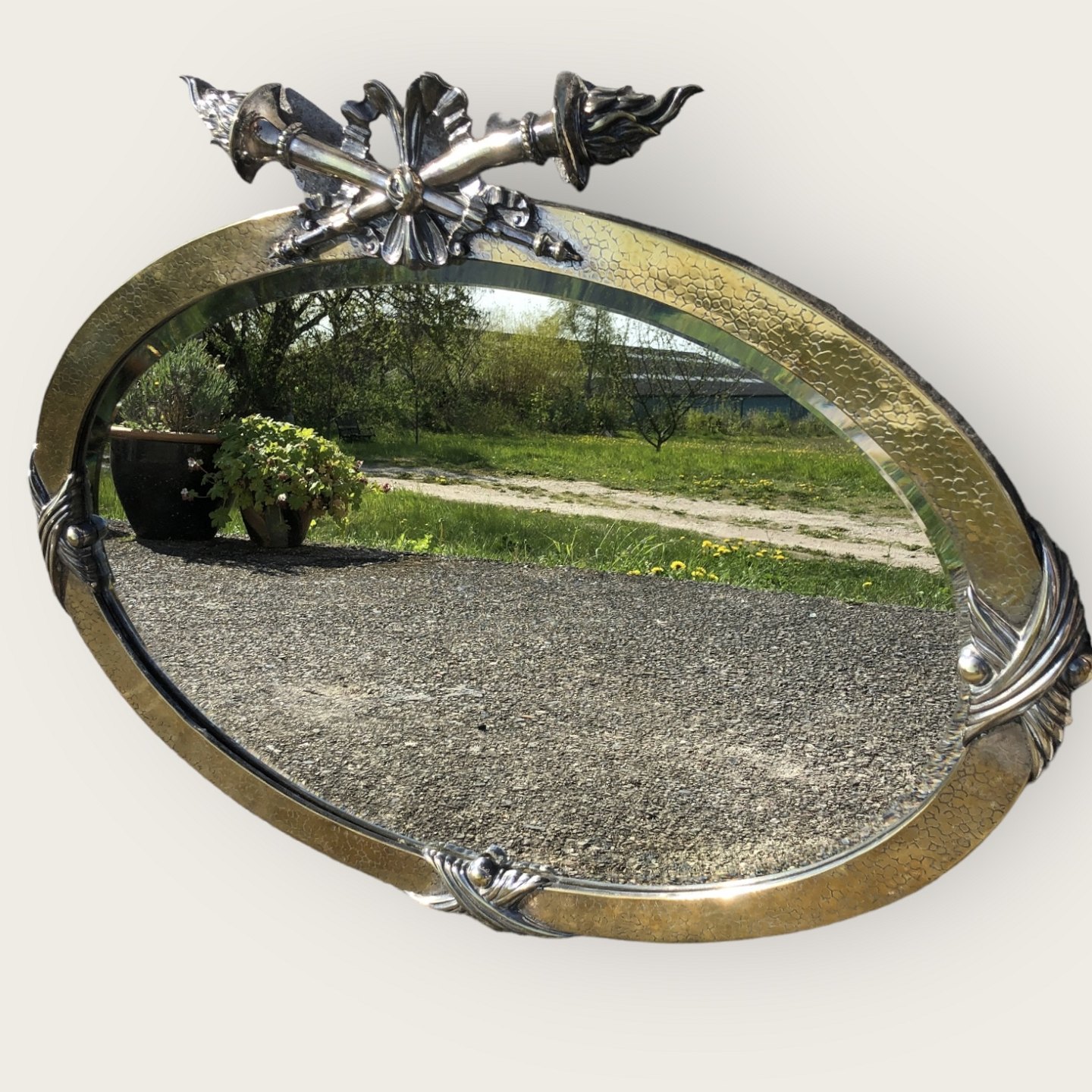 Older large oval faceted mirror in silver-plated metal frame, nicely patinated. Approx. dimensions: 85x65 cm