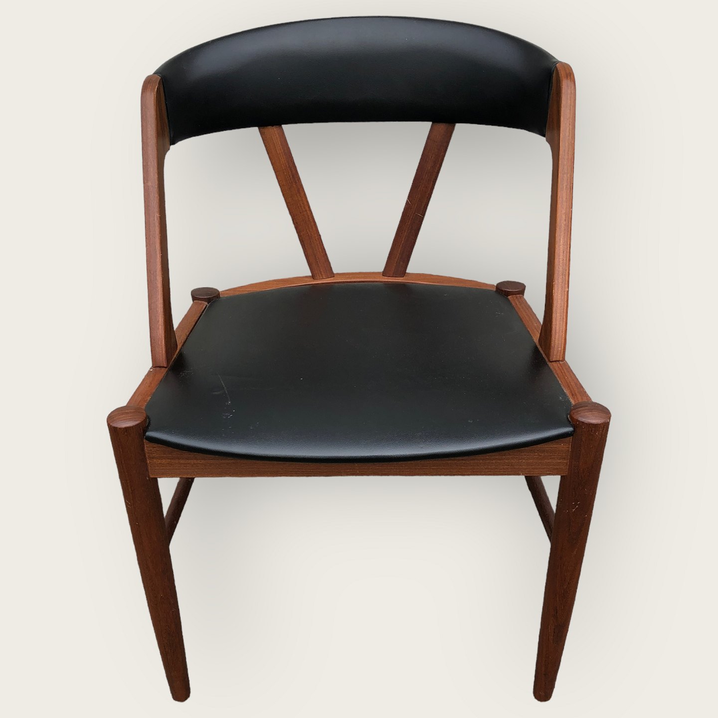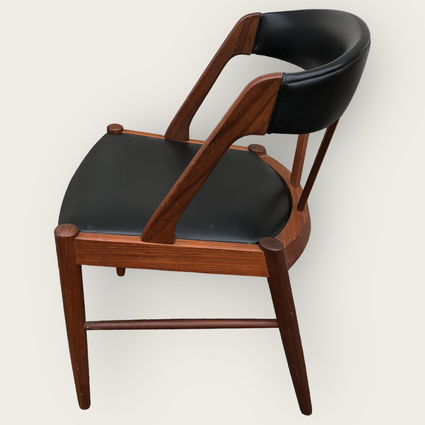 Chair in teak wood with cover in black plastic. Danish modern from the 1960s. Nice used condition.