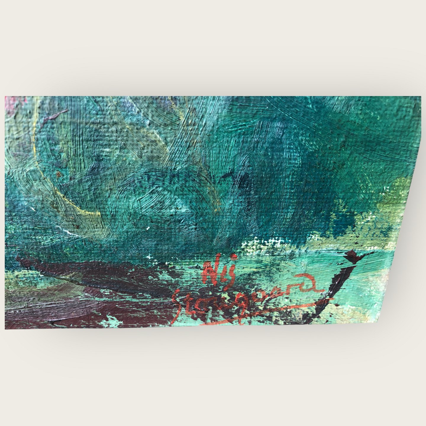 Nis Stougaard, Painting on canvas, motif from harbor on Bornholm. Dimensions with frame 66.5x53.5 cm