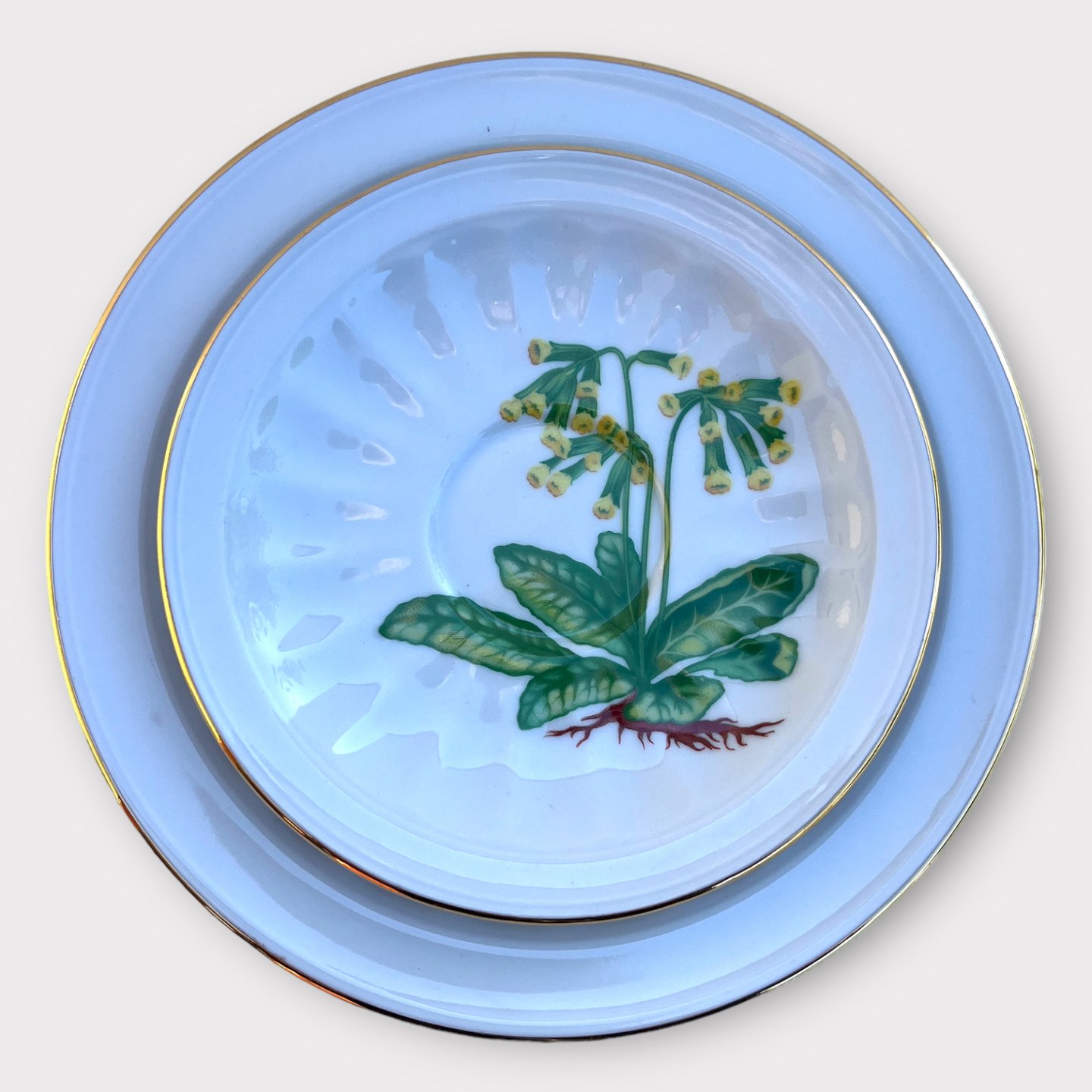 Firkløveren, Carl von Linné, Trio coffee set, Primula 1977, cup 7cm high, Plate 17cm in diameter *Perfect condition*