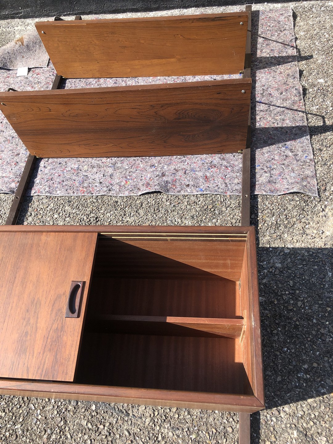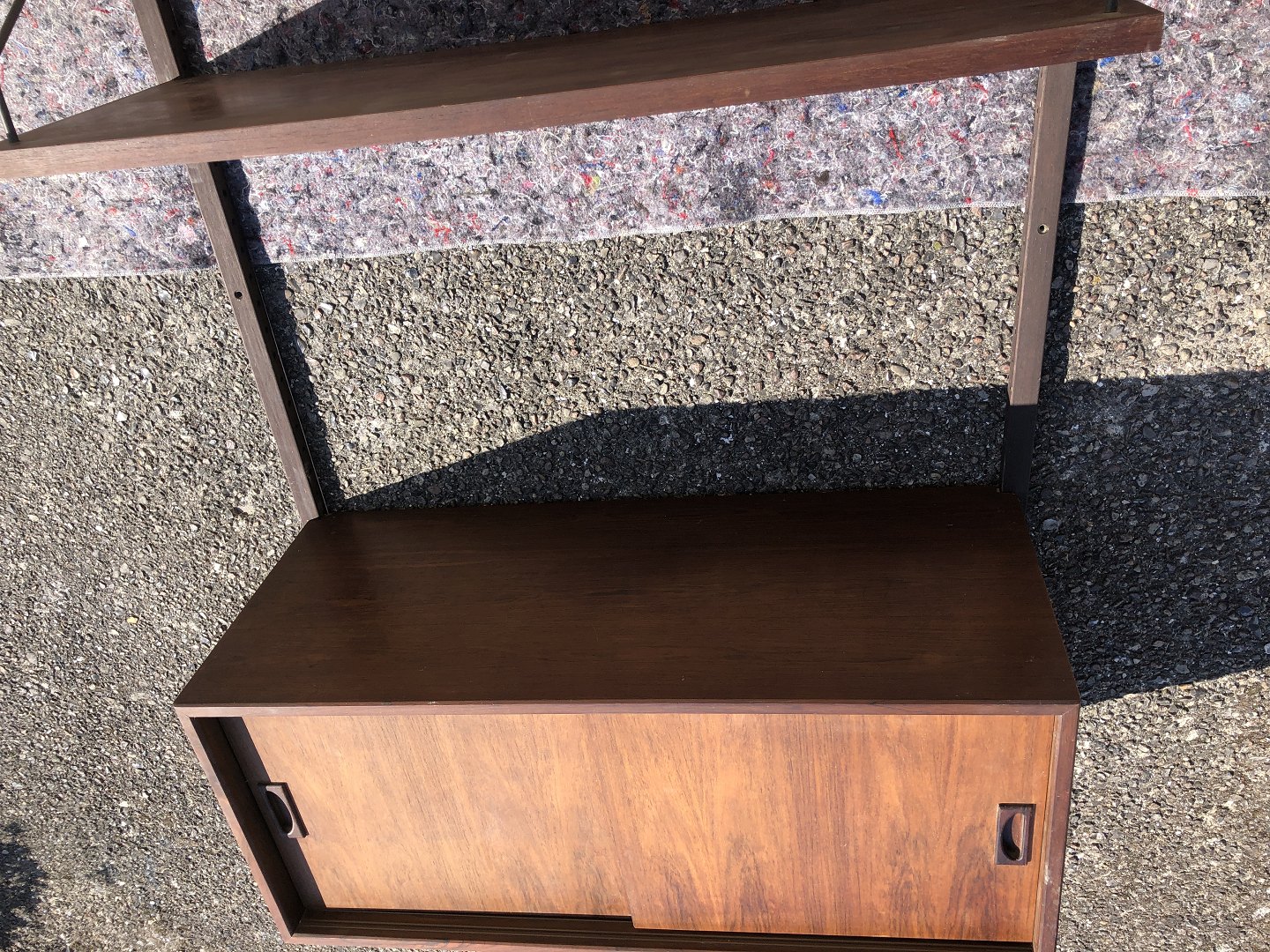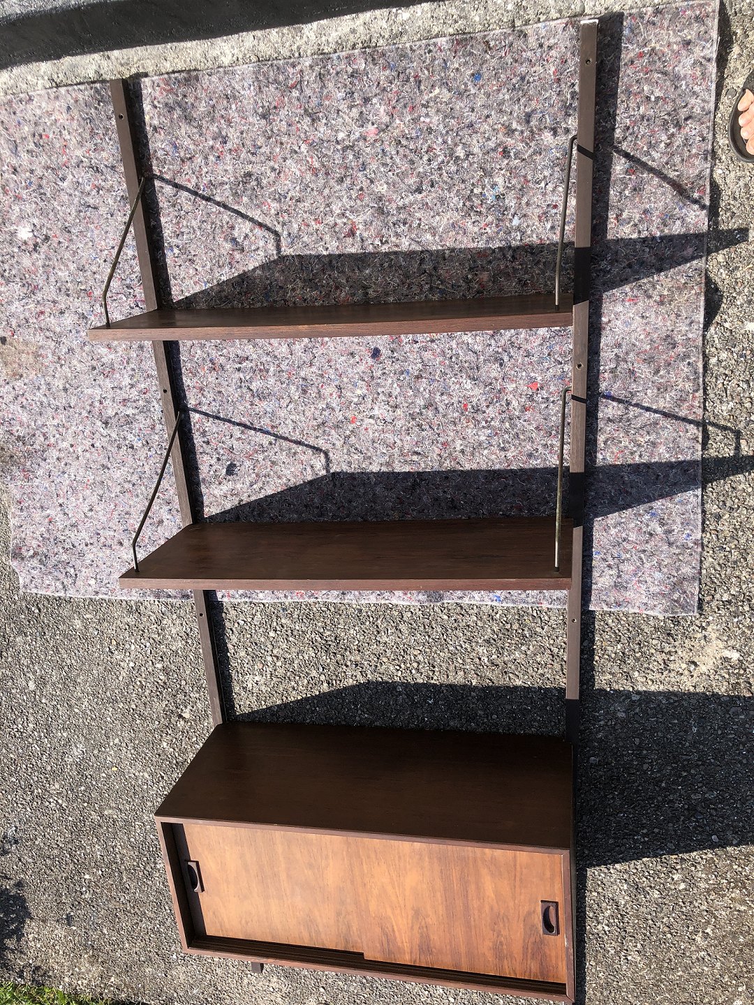 Shelving system in rosewood veneer. Cabinet: 80x35x33cm, Vanger 210cm, Shelf 80x25cm, shelf 80x30cm. Danish modern from the 1960s. Has traces of use.