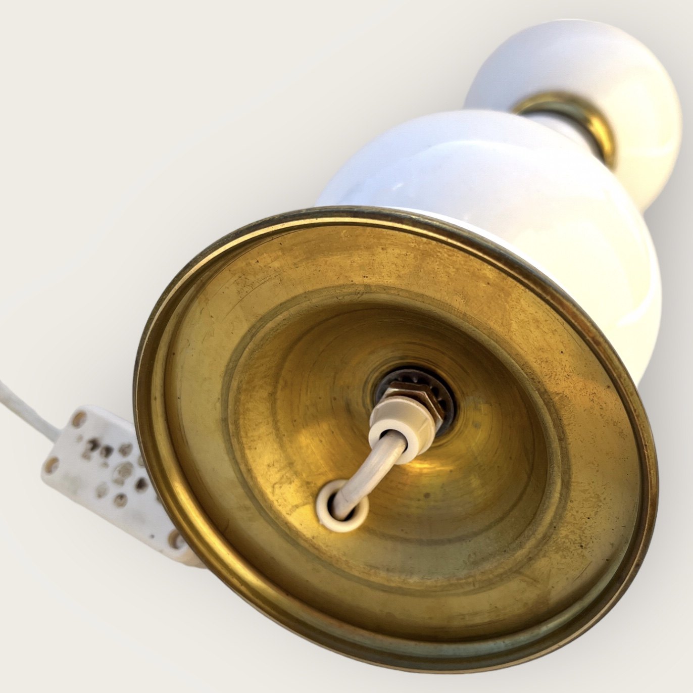 Lamp set, Earthenware, With brass disc, 38cm high (incl. socket) 10cm in diameter *Nice condition*