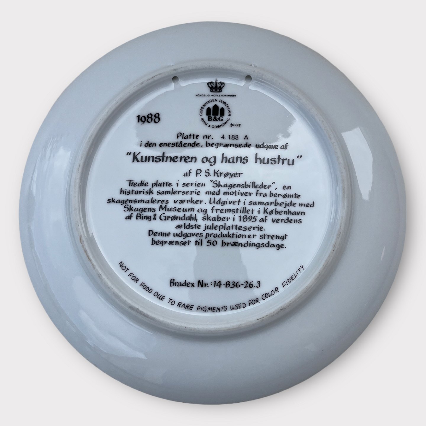 Bing & Grøndahl, Skagensmalerne, 1988, Plate no. 4, "The artist and his wife", P.S. Krøyer *Perfect condition*