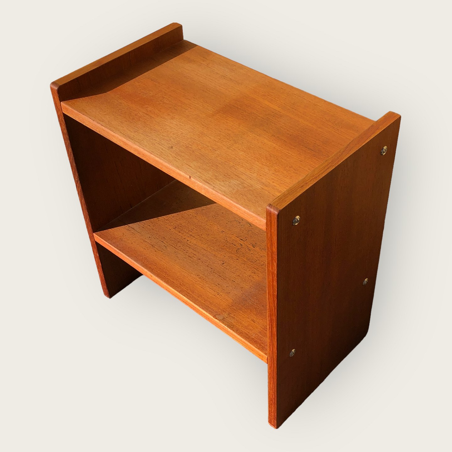 Small bookcase / bedside table in teak veneer. Dimensions: HxWxD 48x45x26 cm
