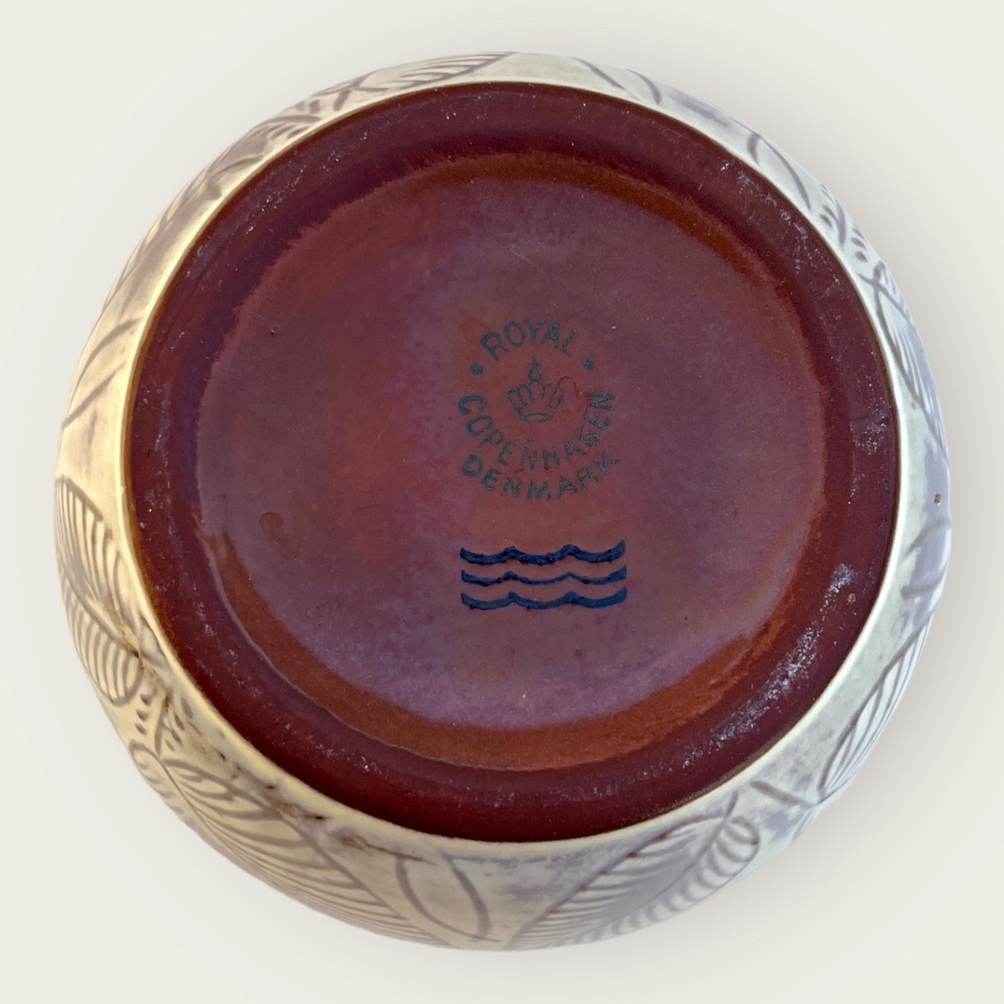 Nils Thorsson for Royal Copenhagen," Lovspring", Vase with leaf pattern, 12cm high, 11cm in diameter *Perfect condition*