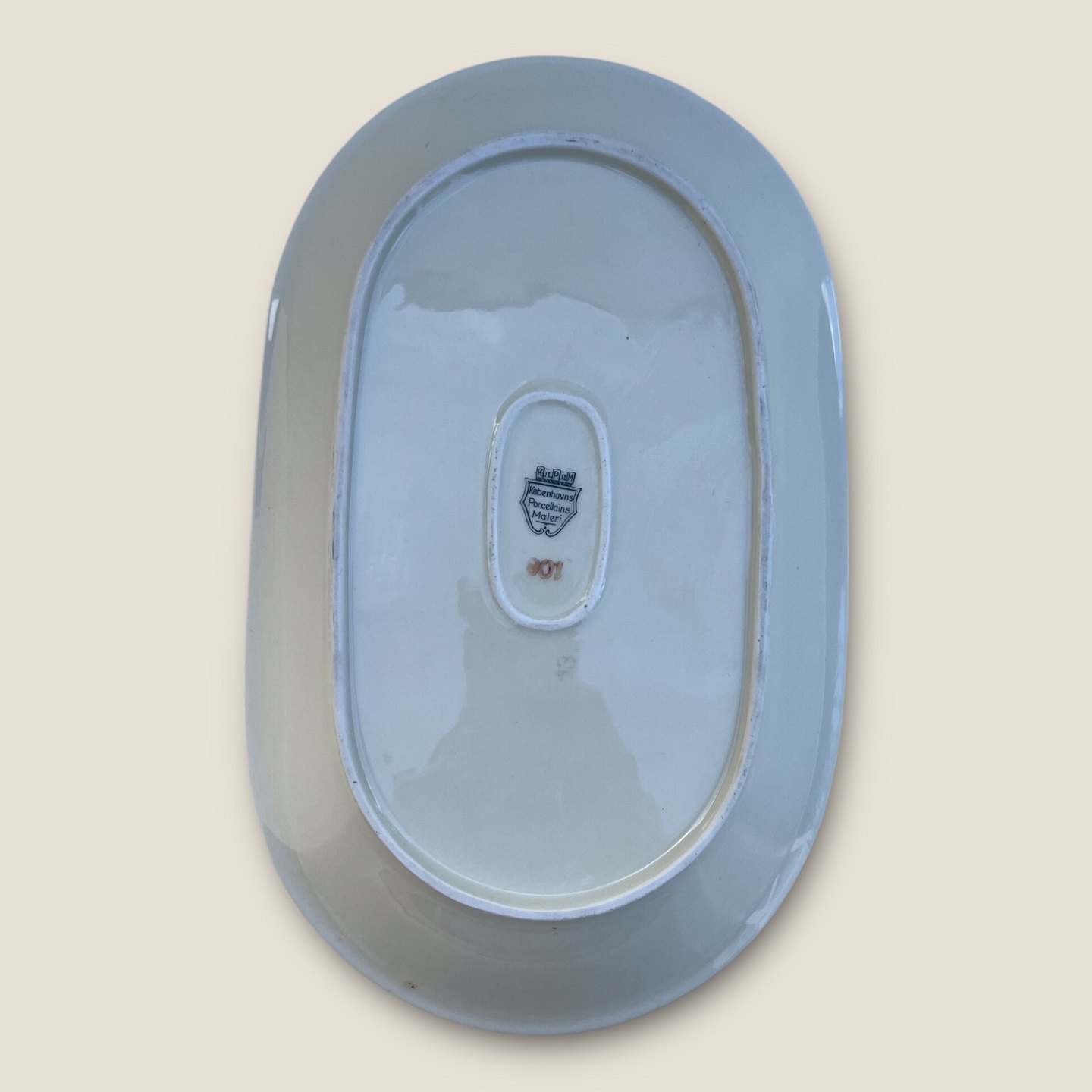 Sort rose, Med platinkant, KPM, Lyngby, Serveringsfad, 27,5cm lang, 17cm bred *Pæn stand*