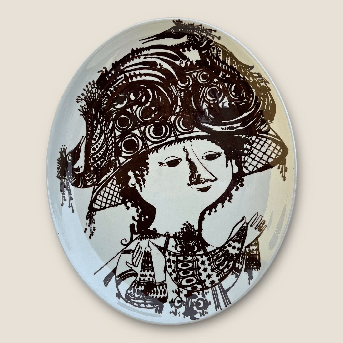 Bjørn Wiinblad, Hanging / Plate, Gwendolen Fairfax, 35cm high, 29cm wide, 3071 - 462 *With some small glaze flaws*