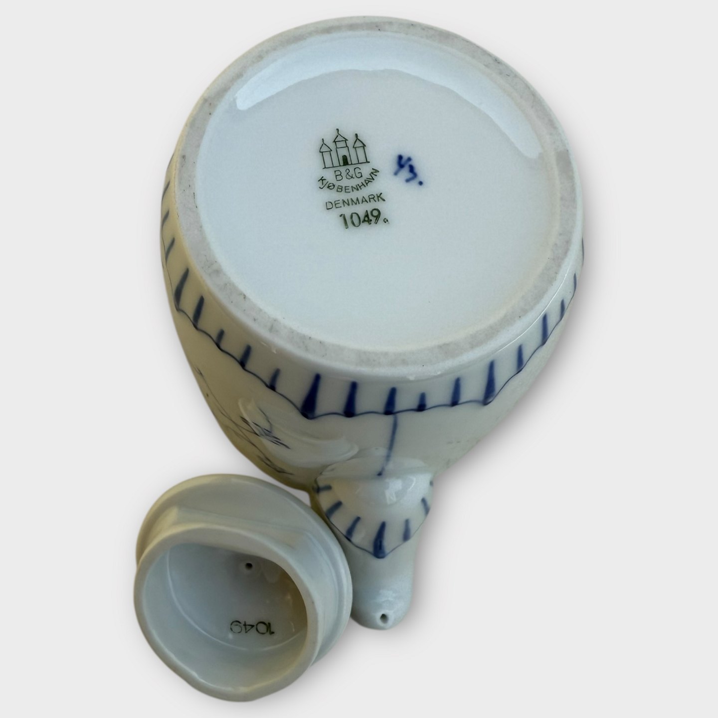 Bing & Grondahl, Blue enamel / Blue Fluted, Small jug in hotel porcelain with logo, perfect condition, height 12 cm, # 1049