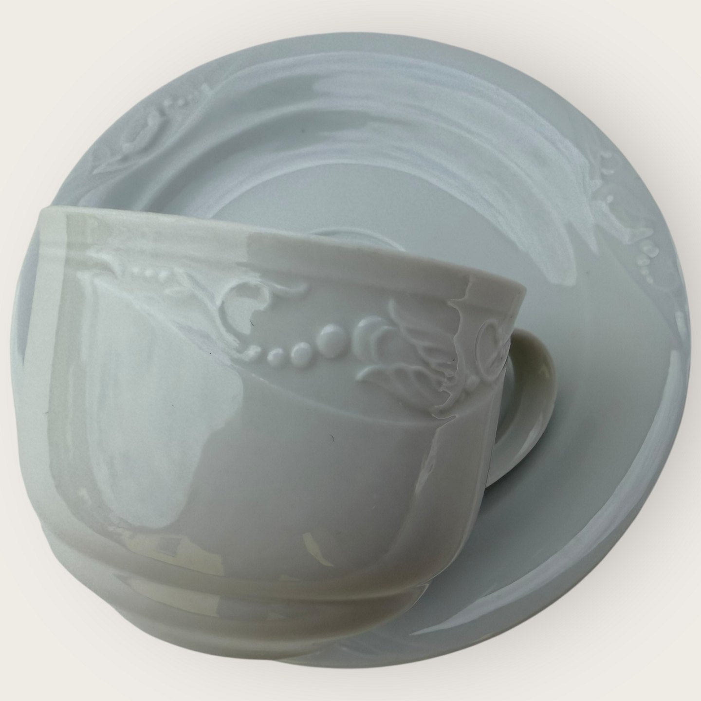 Royal Copenhagen, White Magnolia, coffee cup, #072 and #073 (saucer) 3rd grade, good condition, 8cm in diameter, 6.5cm high, Design Flemming Eskildsen