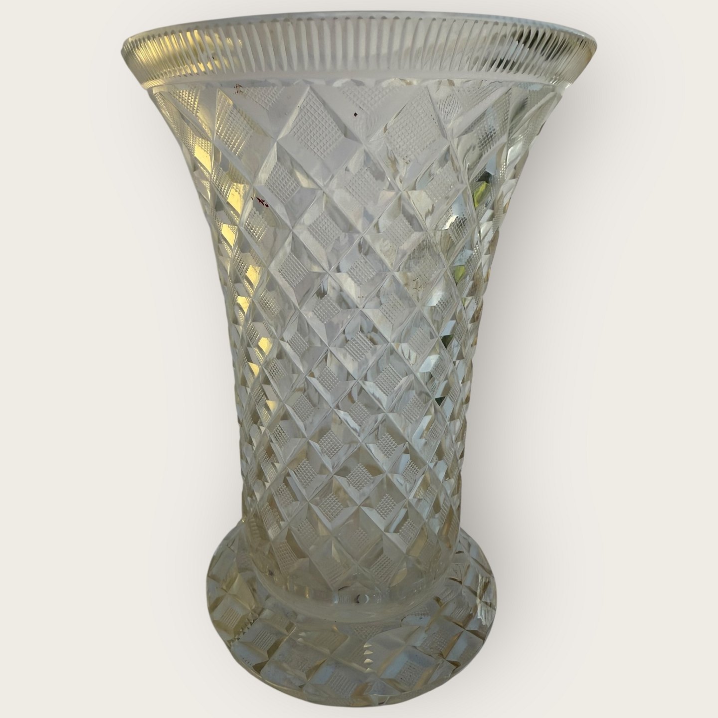 Large crystal vase with many cuts in very nice condition, Height 21.5cm, diameter 14.5cm