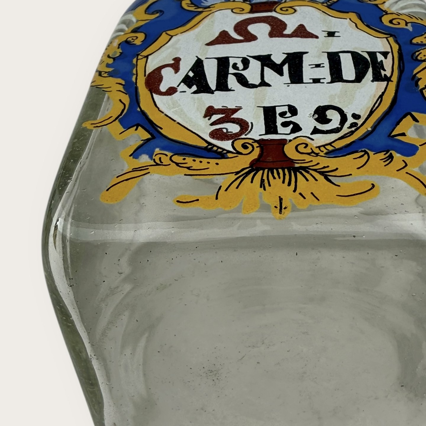 Holmegaard apothecary bottle from 1994, Carm-de 3Ec, Dimensions: 11.5x7x7cm, the bottles are mouth-blown copies of original old apothecary bottles, Signed Hg94.
