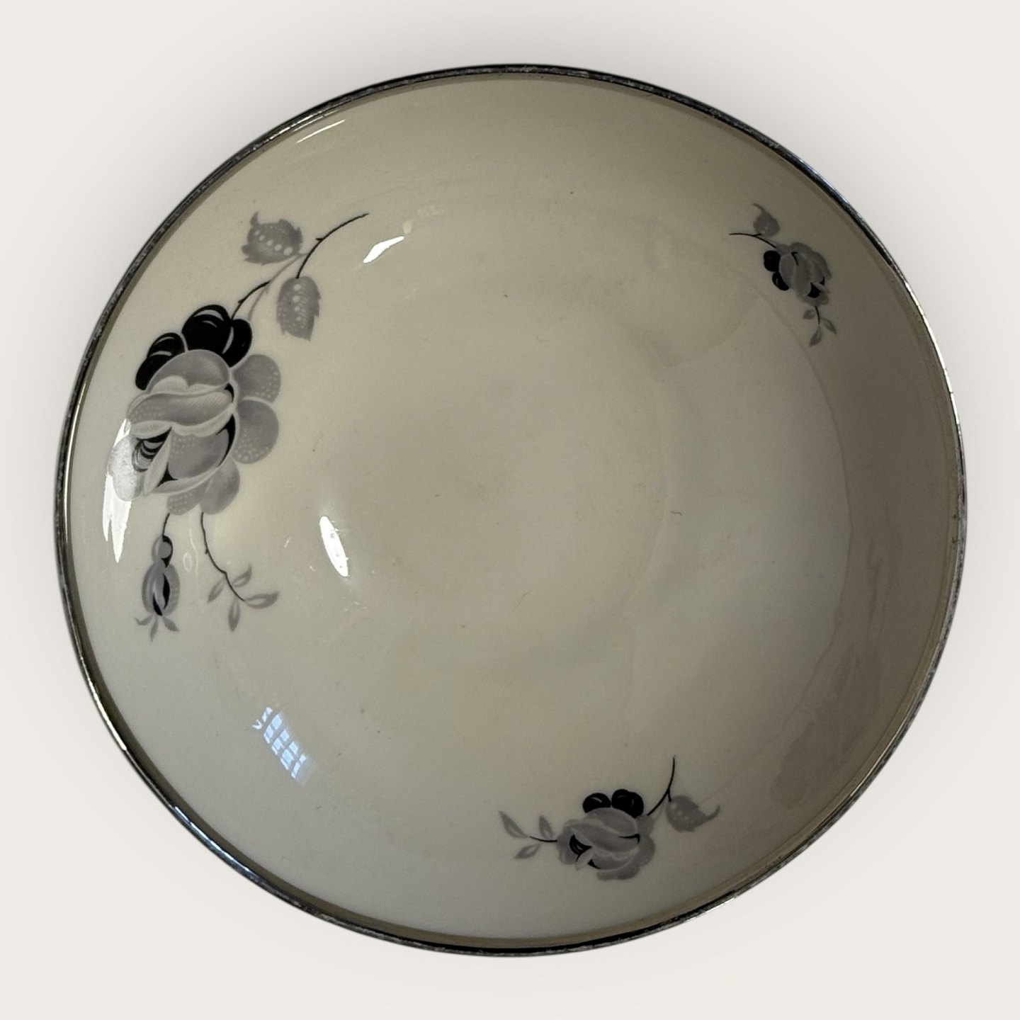 Black rose, with platinum edge, KPM, Lyngby, small bowl, 15 cm in diameter *slight wear on the silver edge, otherwise in good condition*