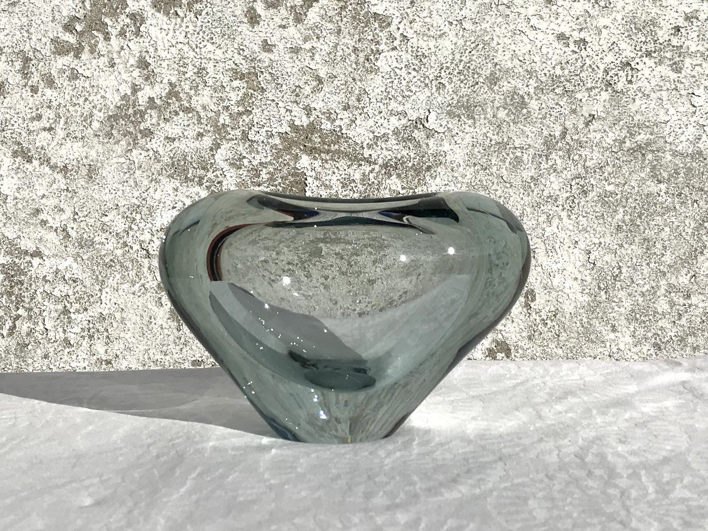 Holmegaard, Menuet, Herzvase, Rauchfarben, 15 cm breit, 10 cm hoch, Design Per Lütken * Guter Zustand mit kleinen Gebrauchsspuren *