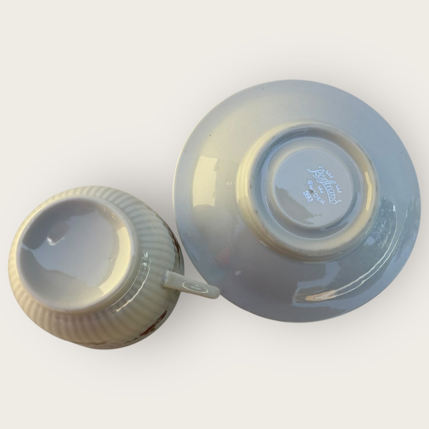 Rørstrand, kleine Tasse mit Blumen und Goldrand, 6 cm Durchmesser, 5,8 cm hoch, guter Zustand.