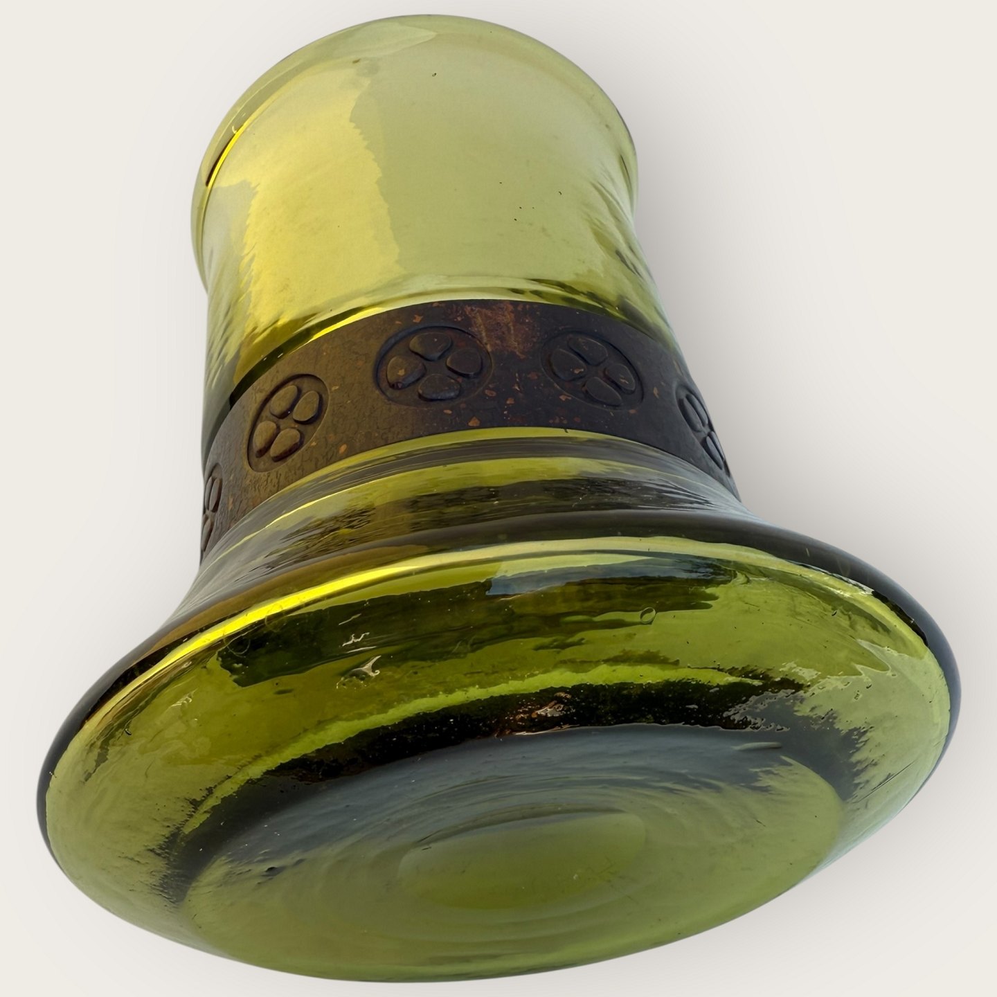 Grüne Glasvase mit Metallfassung