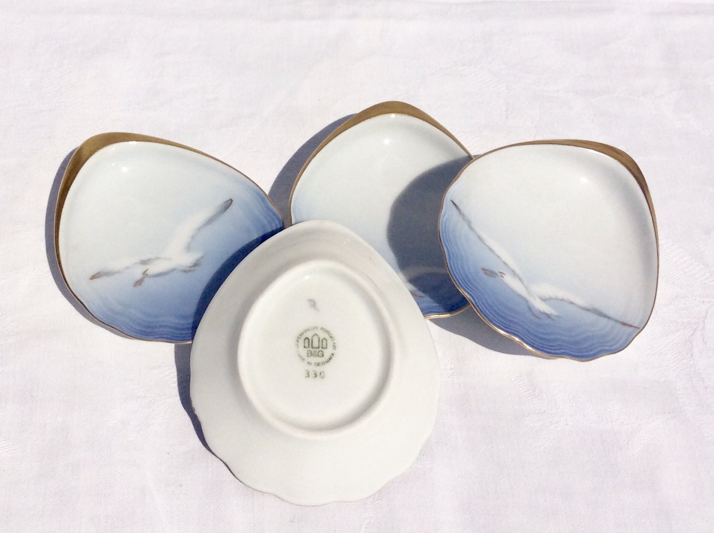Bing & Grøndahl, Måge med guld, Små Asietter #330 #200, mål: 9x7,5 cm, 2. sortering Design Fanny Garde *Pæn stand*