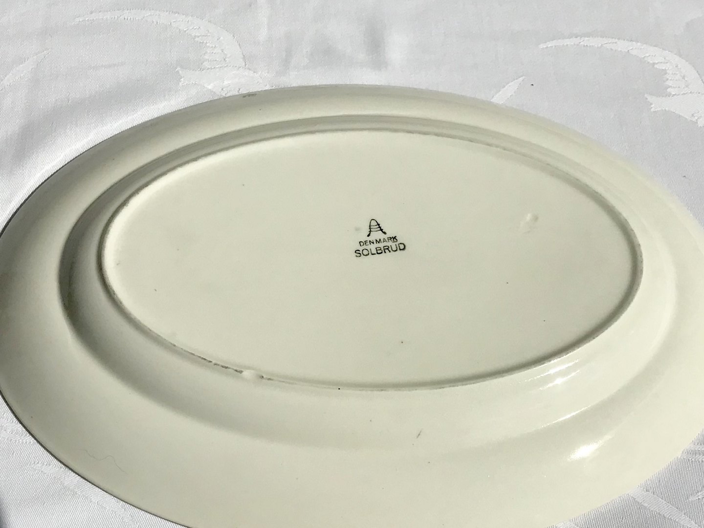 Royal Copenhagen, Aluminia, Solbrud, Ovalt fad, 32,5cm bred, 23,5cm dyb, Design Nils Thorsson *Med krakeleringer*