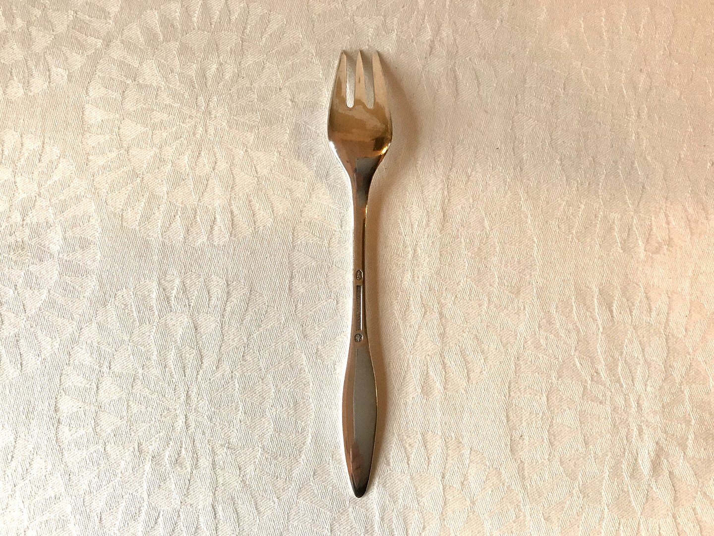 Kongelys, Sølvplet, Kagegaffel, Frigast sølvvarefabrik, 15,5cm lang *Perfekt stand*