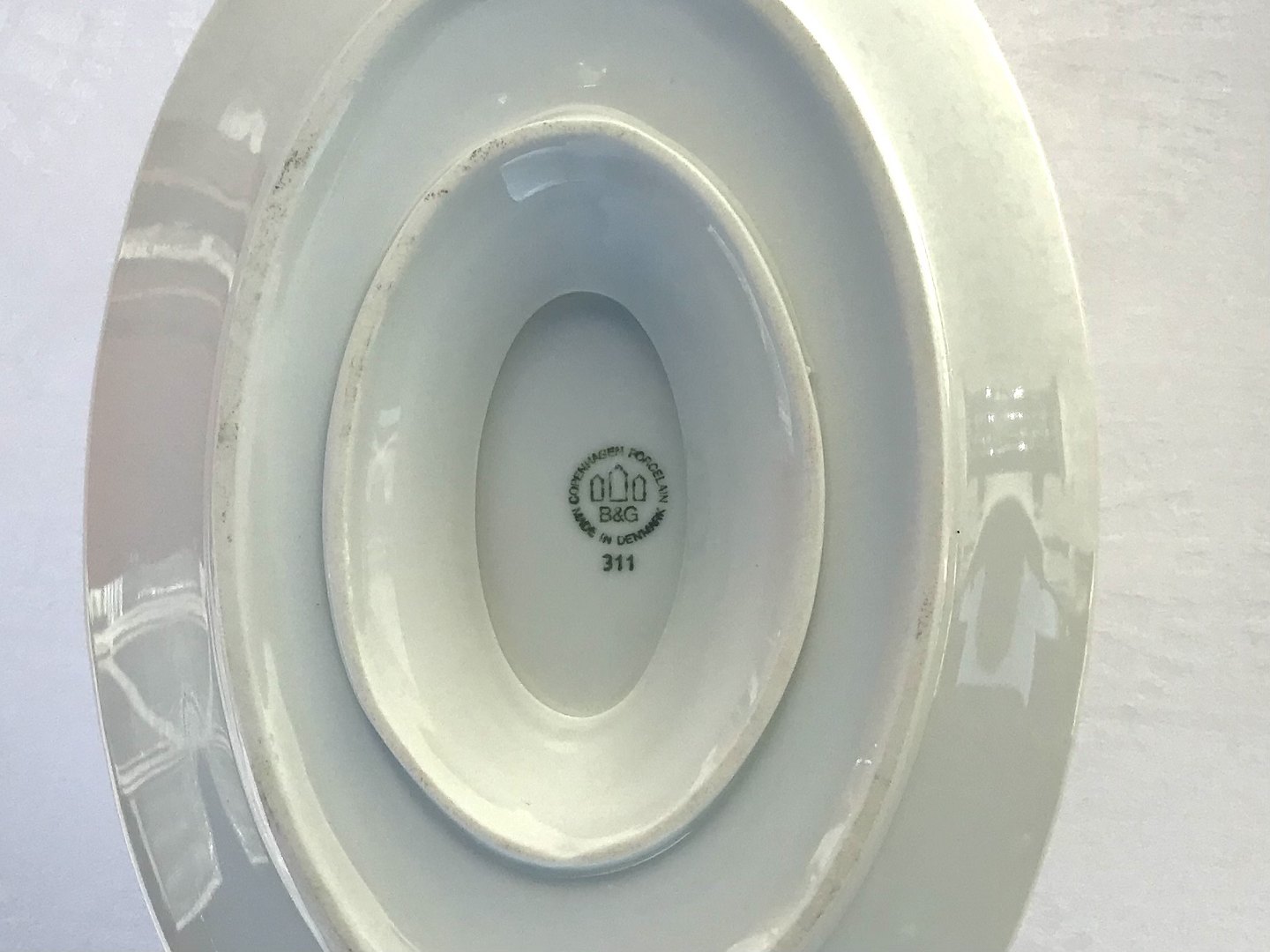 Bing & Grøndahl, Hvid Offenbach, Sovseskål #311, 24cm bred, 10cm høj, 2.sortering *Pæn stand*