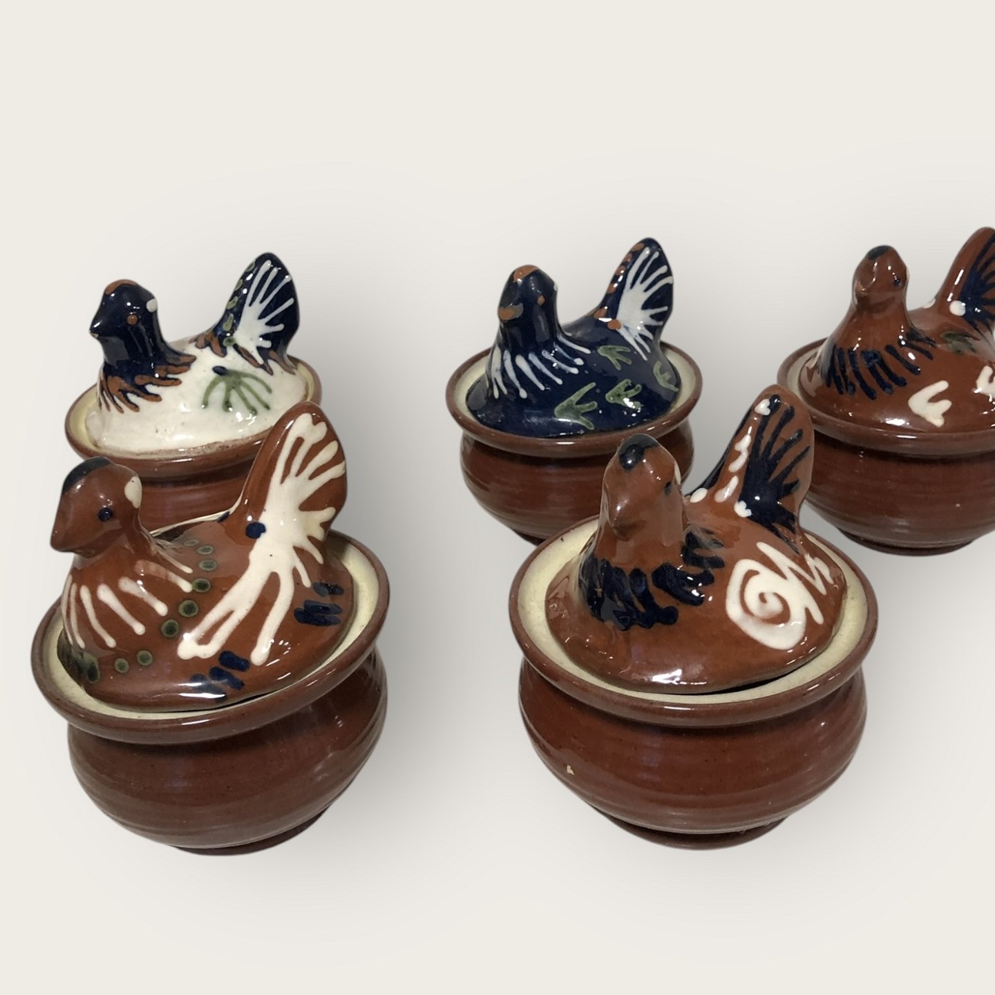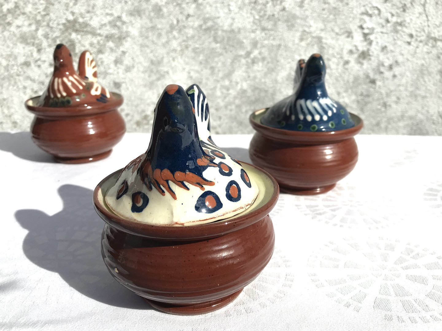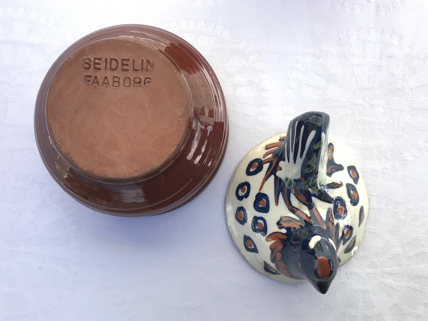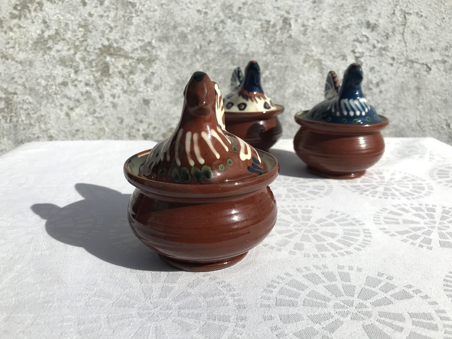 Seidelin keramik, Faaborg, Keramikhøns, 2stk brun, (Den blå og hvide er solgt), 10cm i diameter, 11cm høj *Pæn stand med enkelte brugsspor*