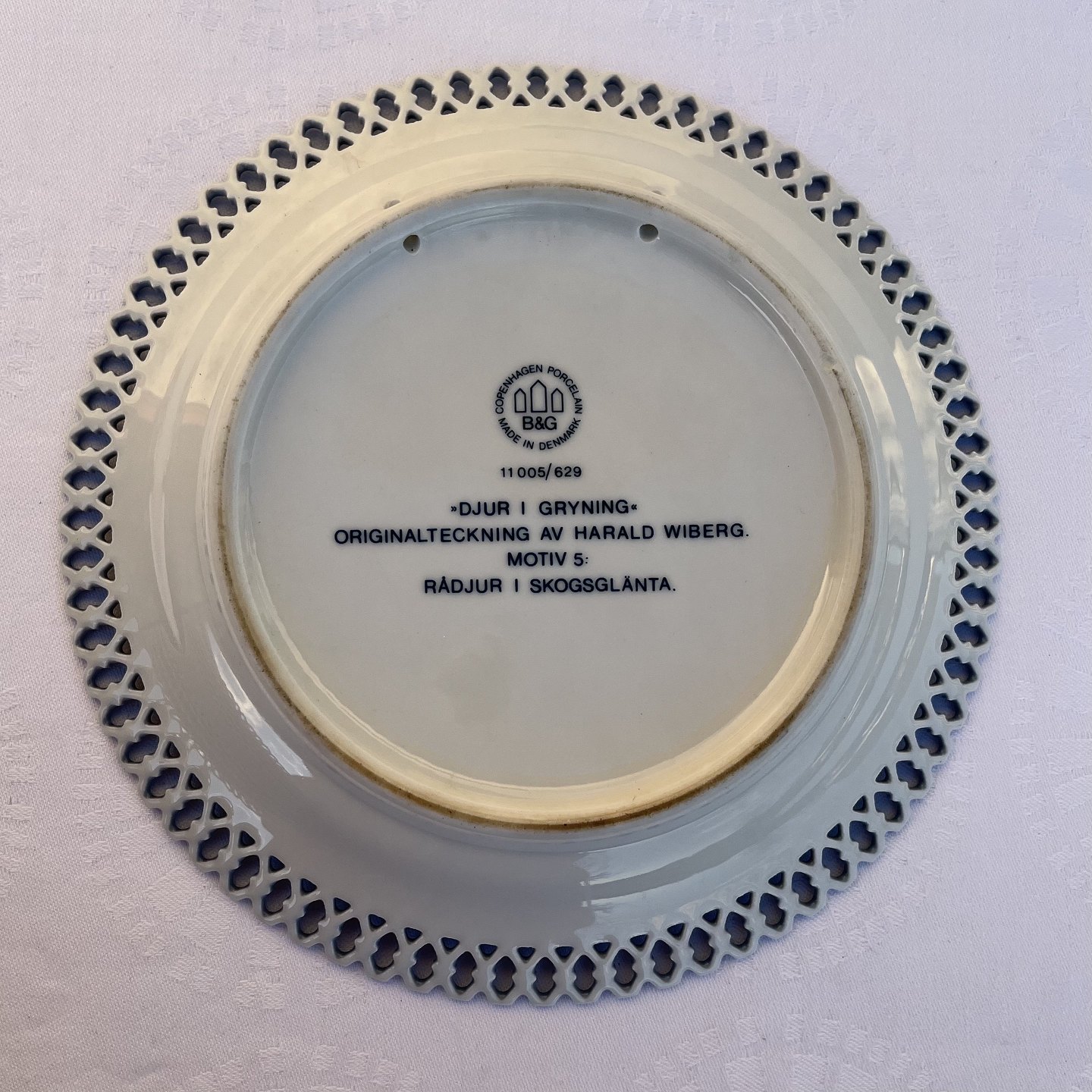 Bing & Grøndahl, Platte, Harald Wiberg, Djur i gryning #11005/629, 20cm i diameter, Rädjur i skogslänta, Motiv 5 *Perfekt stand*