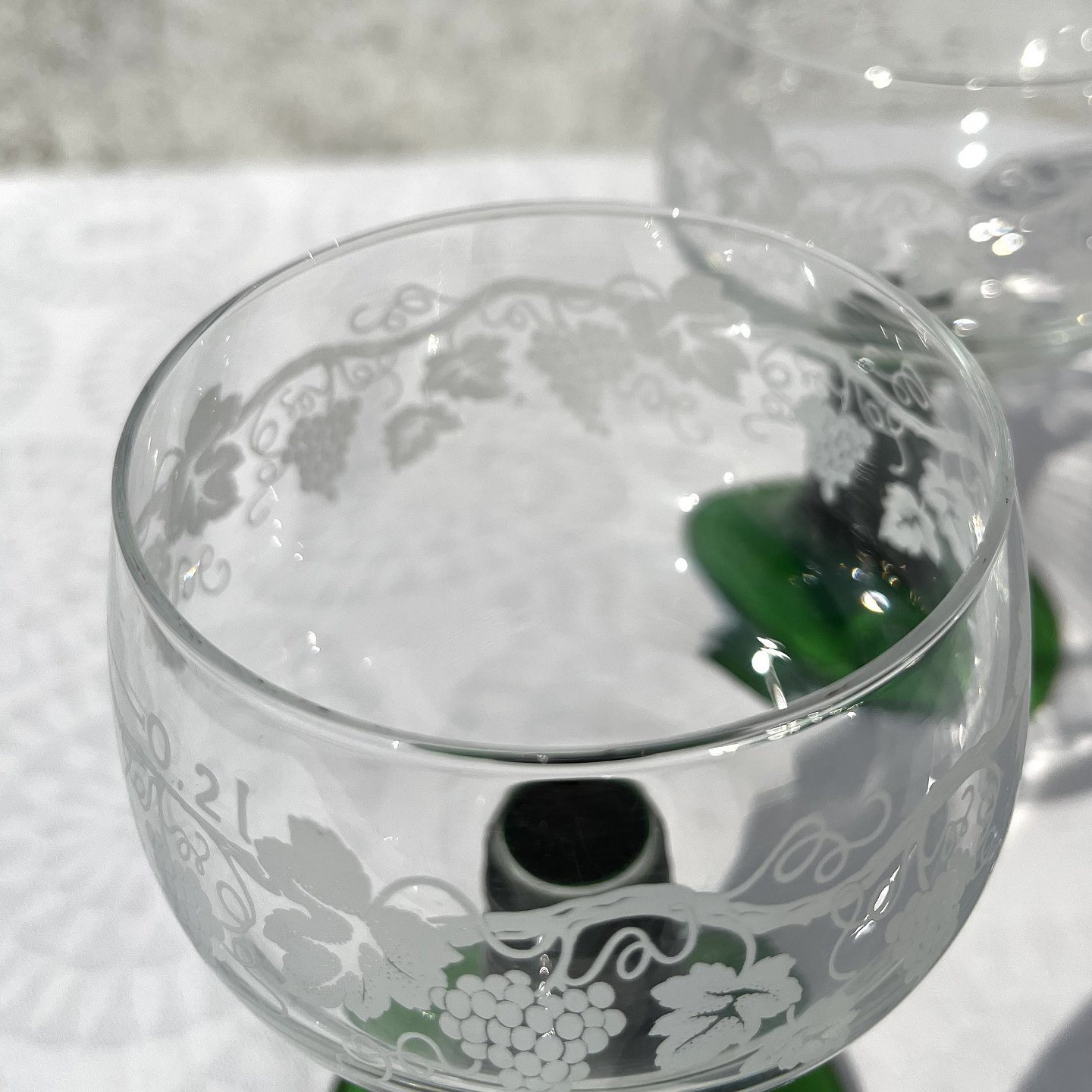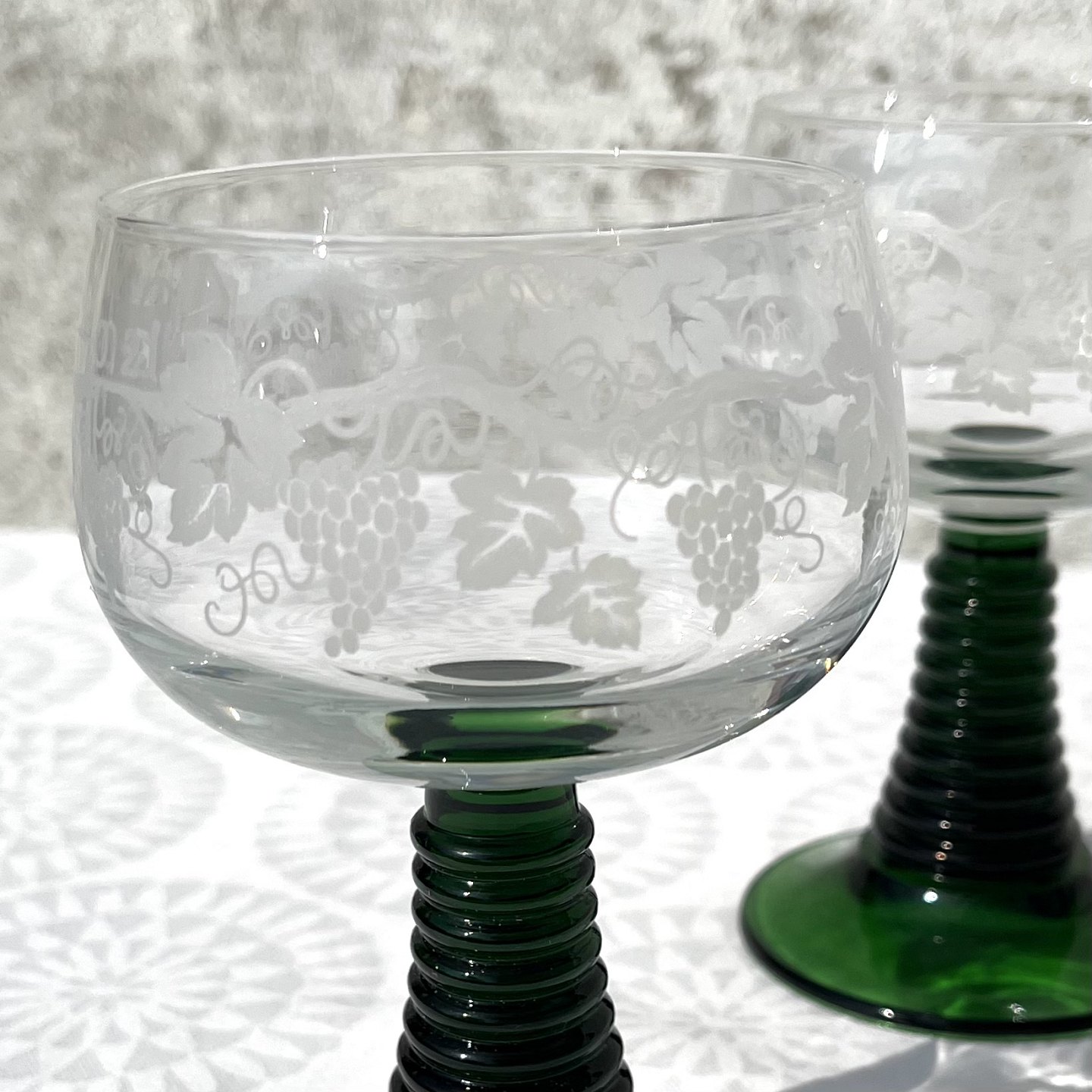 Franske “Rømerglas” Rødvin, 8cm i diameter, 13,5cm høj, Med druer & blade *Perfekt stand*