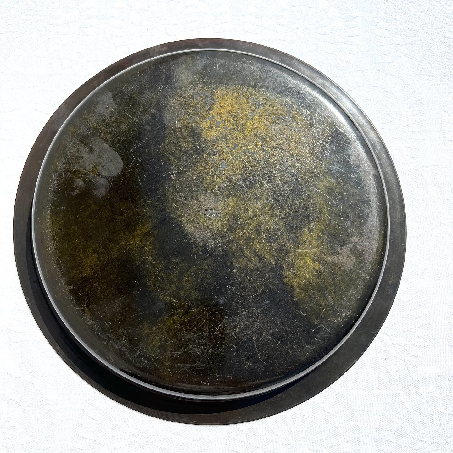 Bronze fad med skibsmotiv, 27,5cm i diameter, Stemplet: Ægte bronce *Pæn patineret stand*