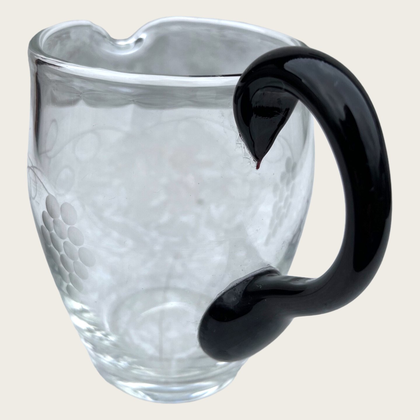 Kande med drueslibninger og sort hank, 11cm høj, 12cm bred *Perfekt stand*
