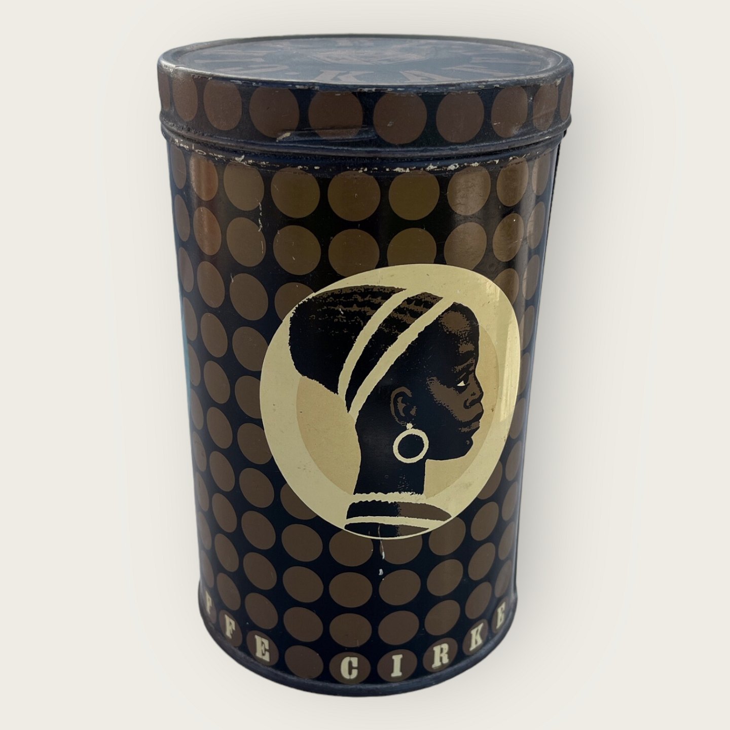 Kaffedåse, FDB cirkelkaffe, 17cm høj, 11,5cm i diameter, Design Aage Sikker Hansen *Charmerende patineret*