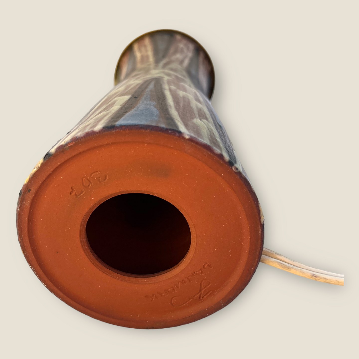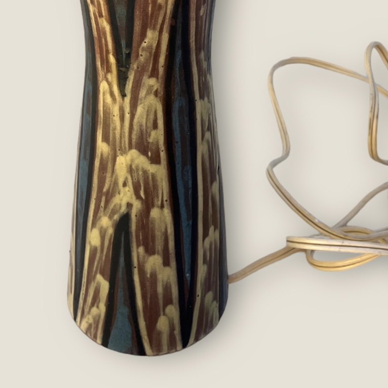 Johannes Andersen ceramics. Retro table lamp, With striped glaze, 32cm high (incl. socket), 9cm in diameter, Signed JA *Nice condition*