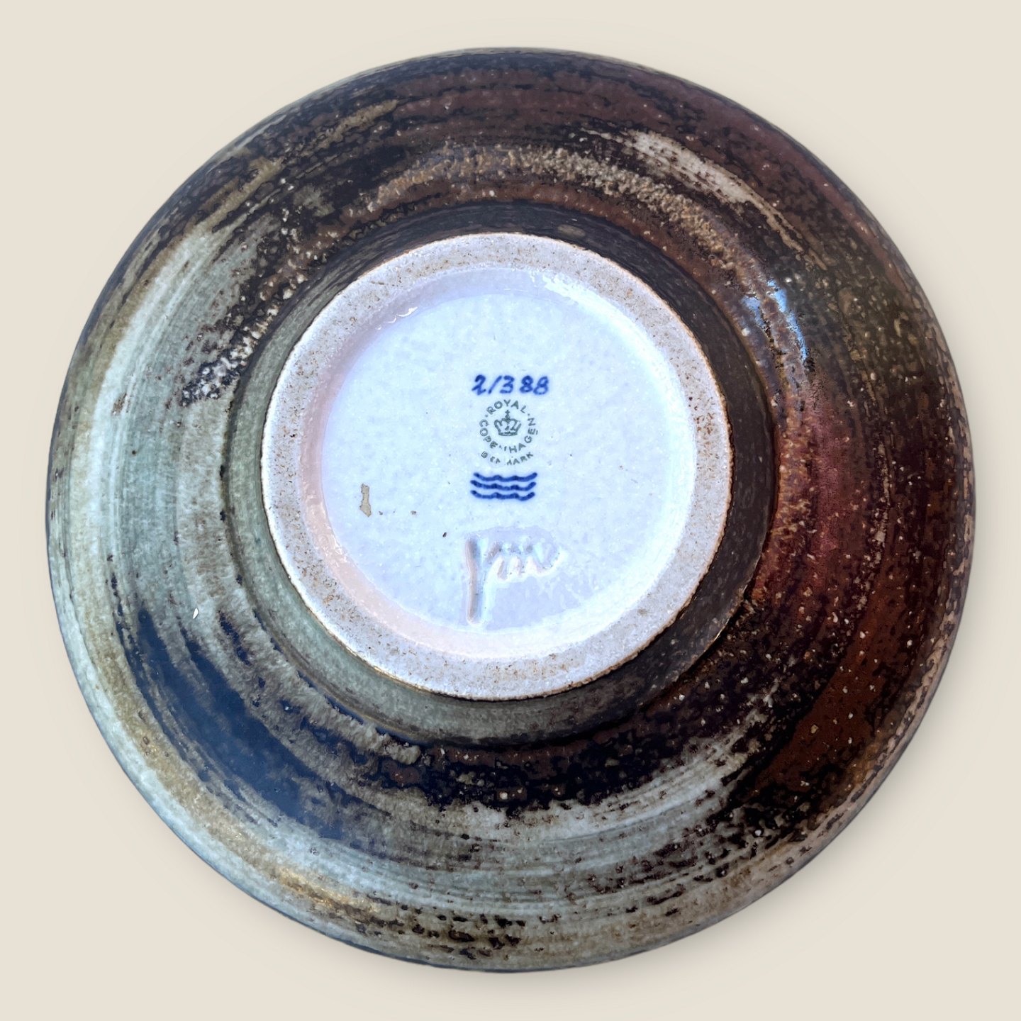 Royal Copenhagen, Stentøj, Bordfad med fuglerelief #21388, 25cm i diameter, 5cm høj, Design Jørgen Mogensen *Pæn stand*