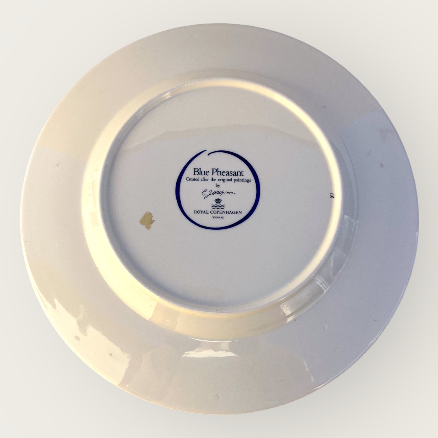 Royal Copenhagen, Blå fasan, Rundt fad #1738727, 28cm i diameter, Nyfortolkning af Christians Joachim's design *Pæn stand*