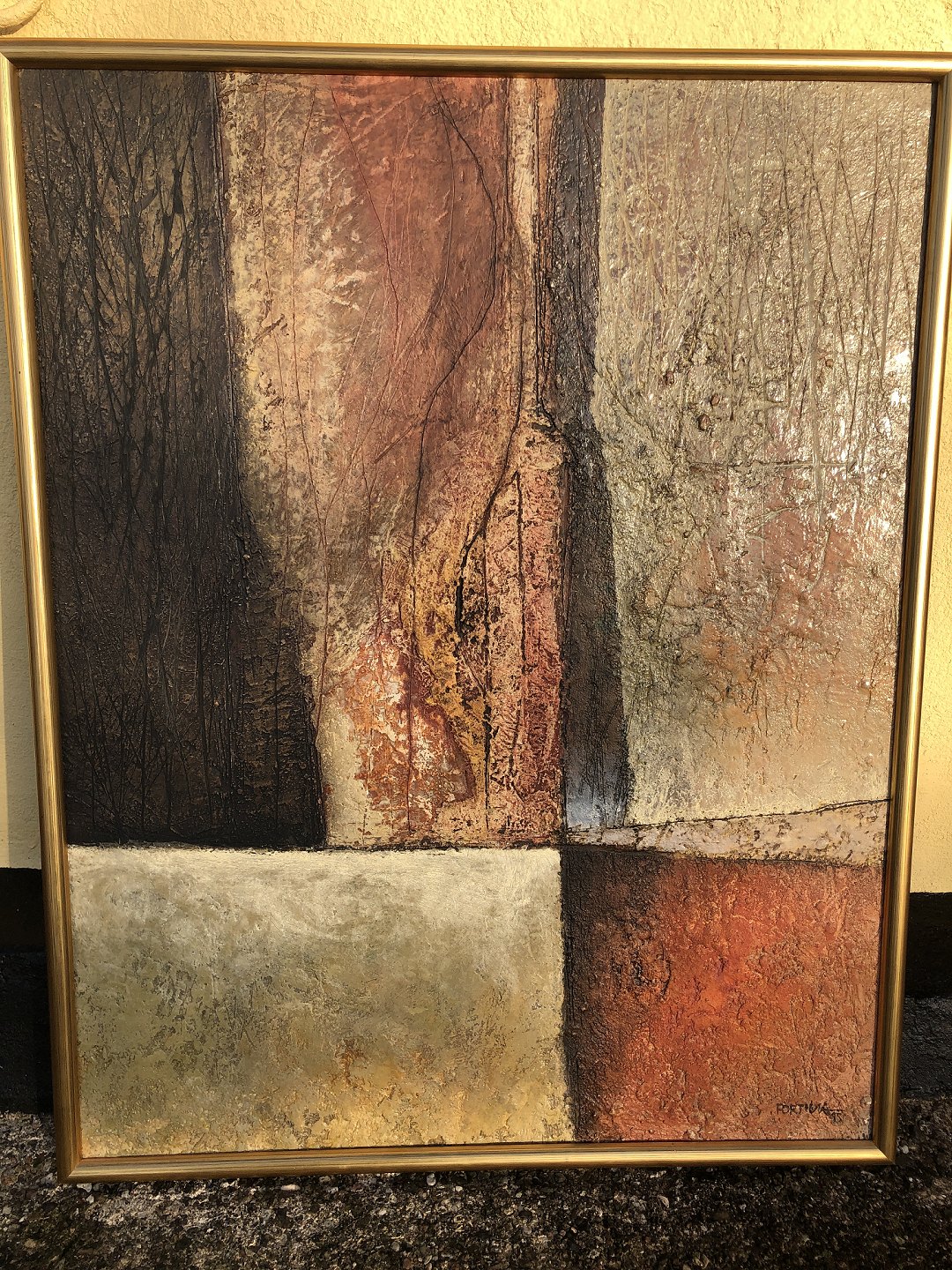 Moderne abstrakt maleri på plade, utydeligt signeret: "Fortina 95" ?