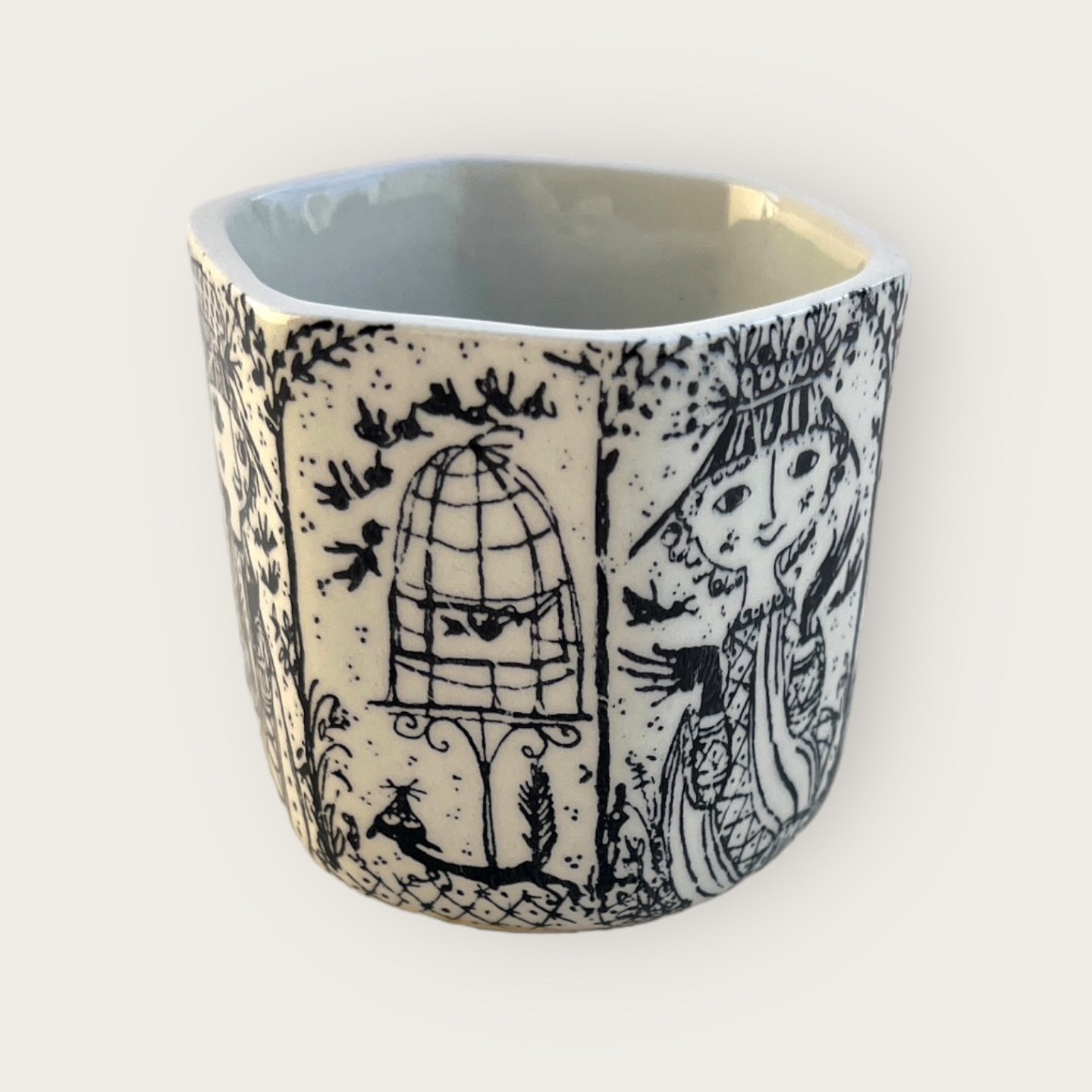 Bjørn Wiinblad, Bæger, Sort, 6cm høj, 6,5cm i diameter, Nr. 3130- 252, Nymølle *Pæn stand*