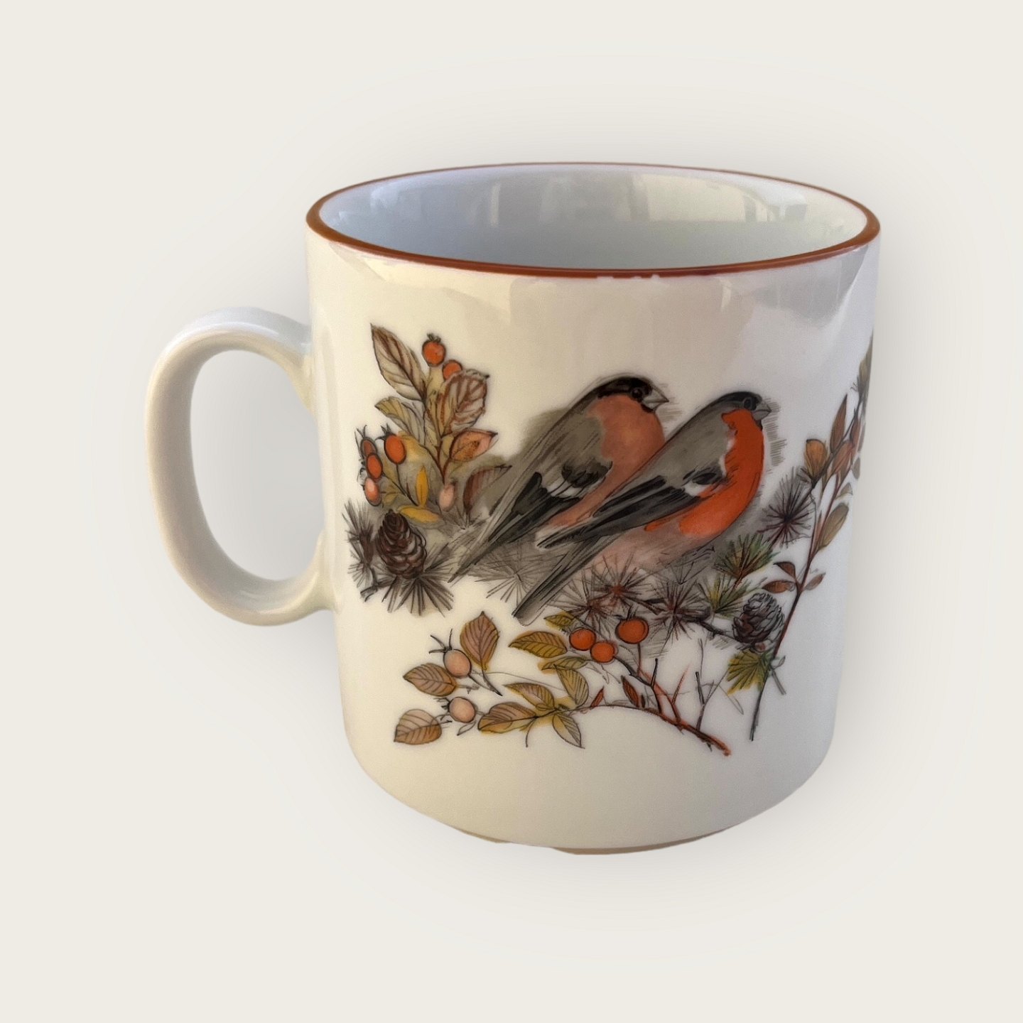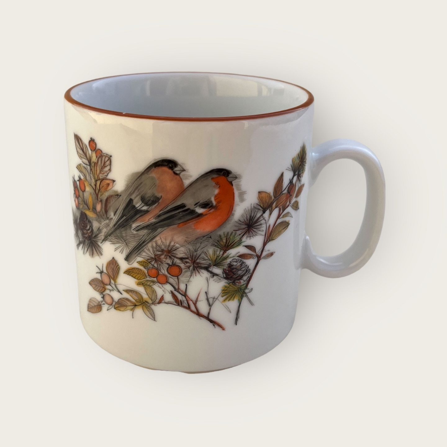 Mads Stage, Year Mug, 1992, Eurasian bullfinch, 7.5cm in diameter, 8.5cm high *Nice condition*