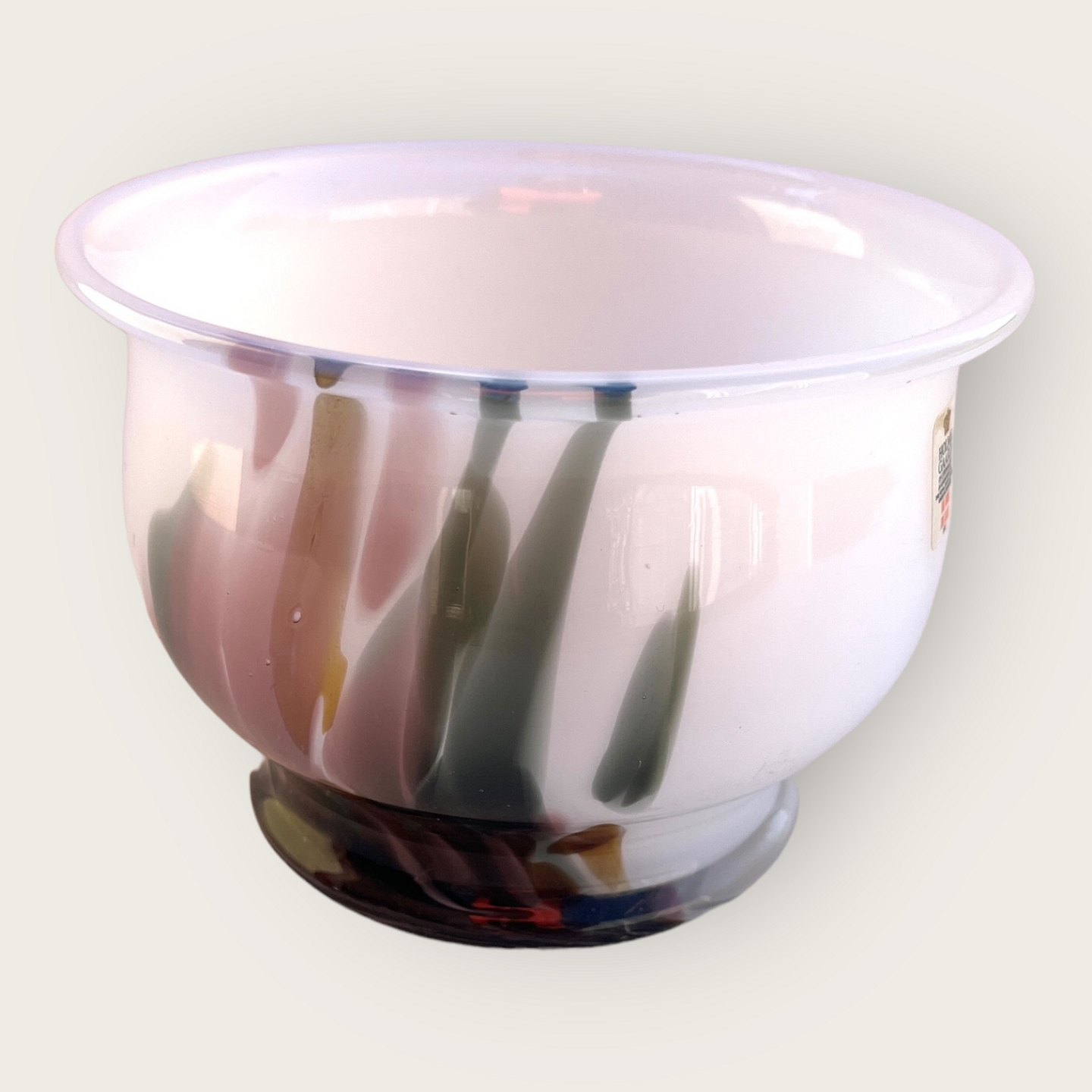 Holmegaard, Cascade, Vase, Opalglas med pletter og striber, 13cm i diameter, 9,5cm høj, Design Per Lütken *Perfekt stand*