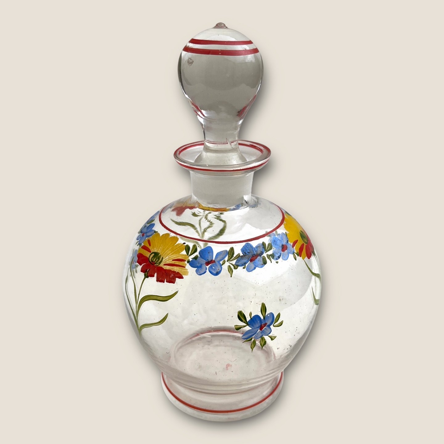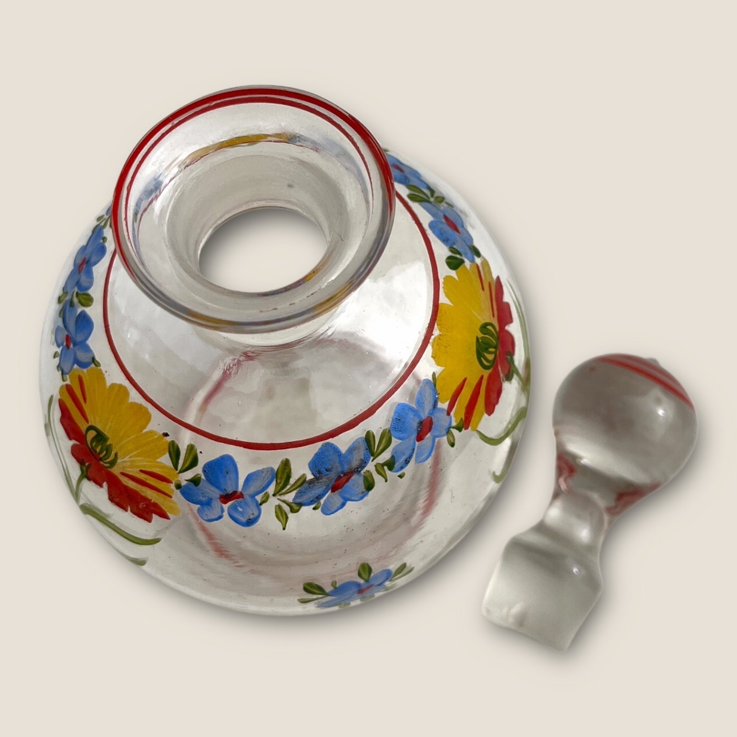 Karaffel med malet blomster motiver, 20cm høj, 11cm bred *Pæn stand*