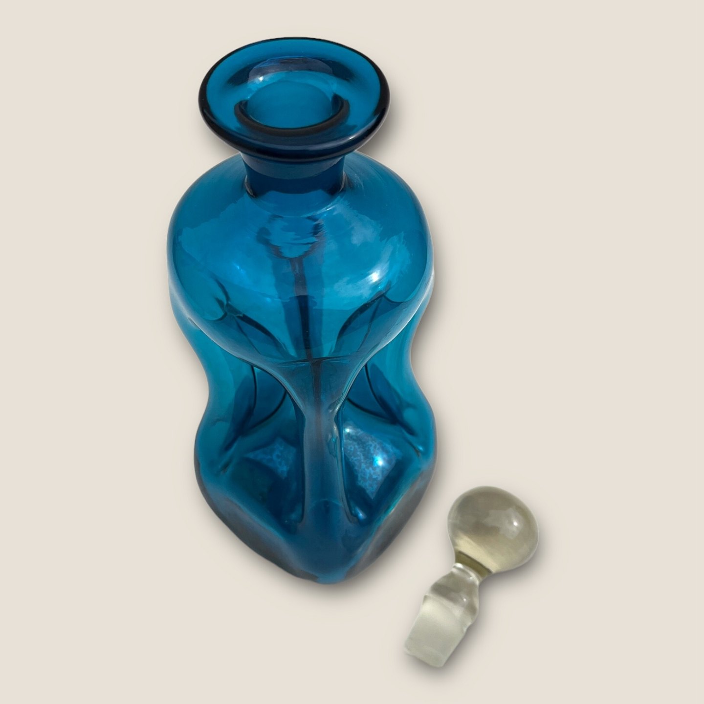 Holmegaard, Klukflaske, Blå, 25cm høj, 7cm bred *Pæn stand*