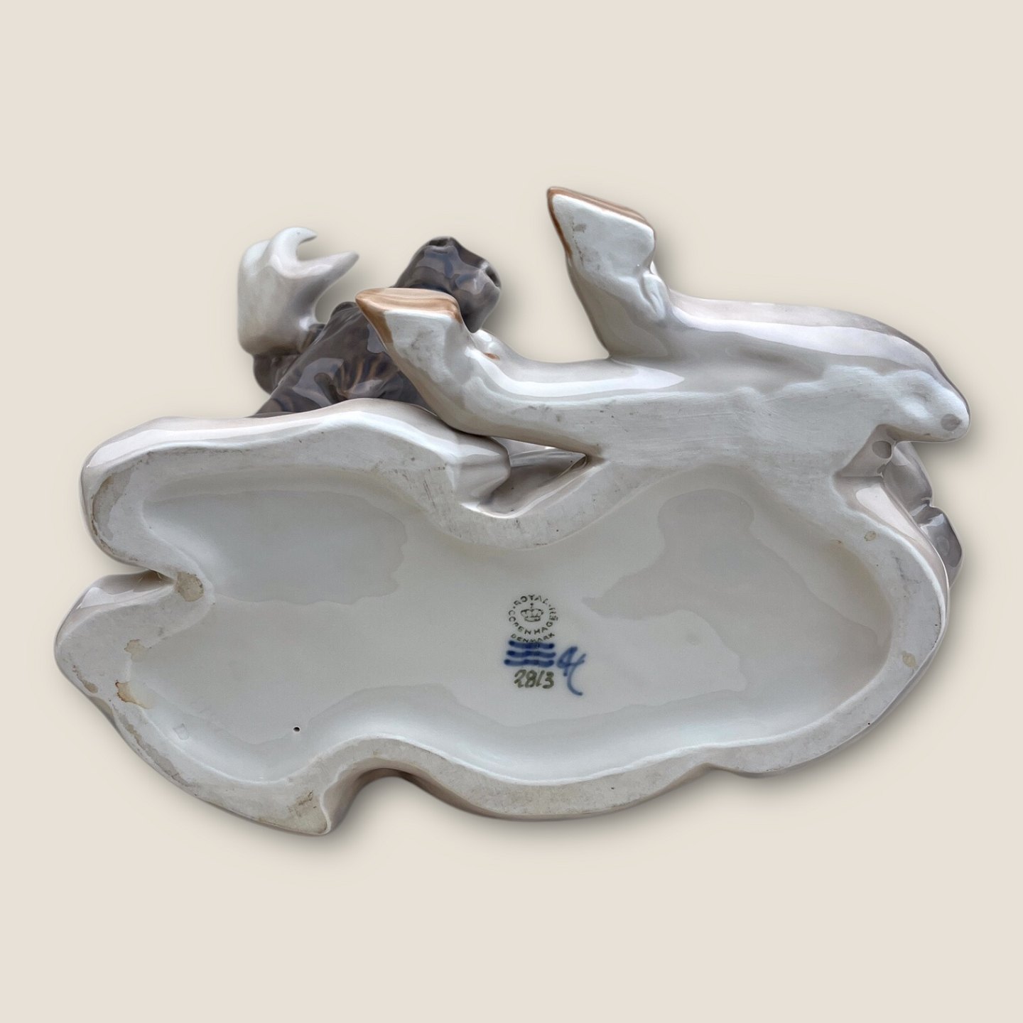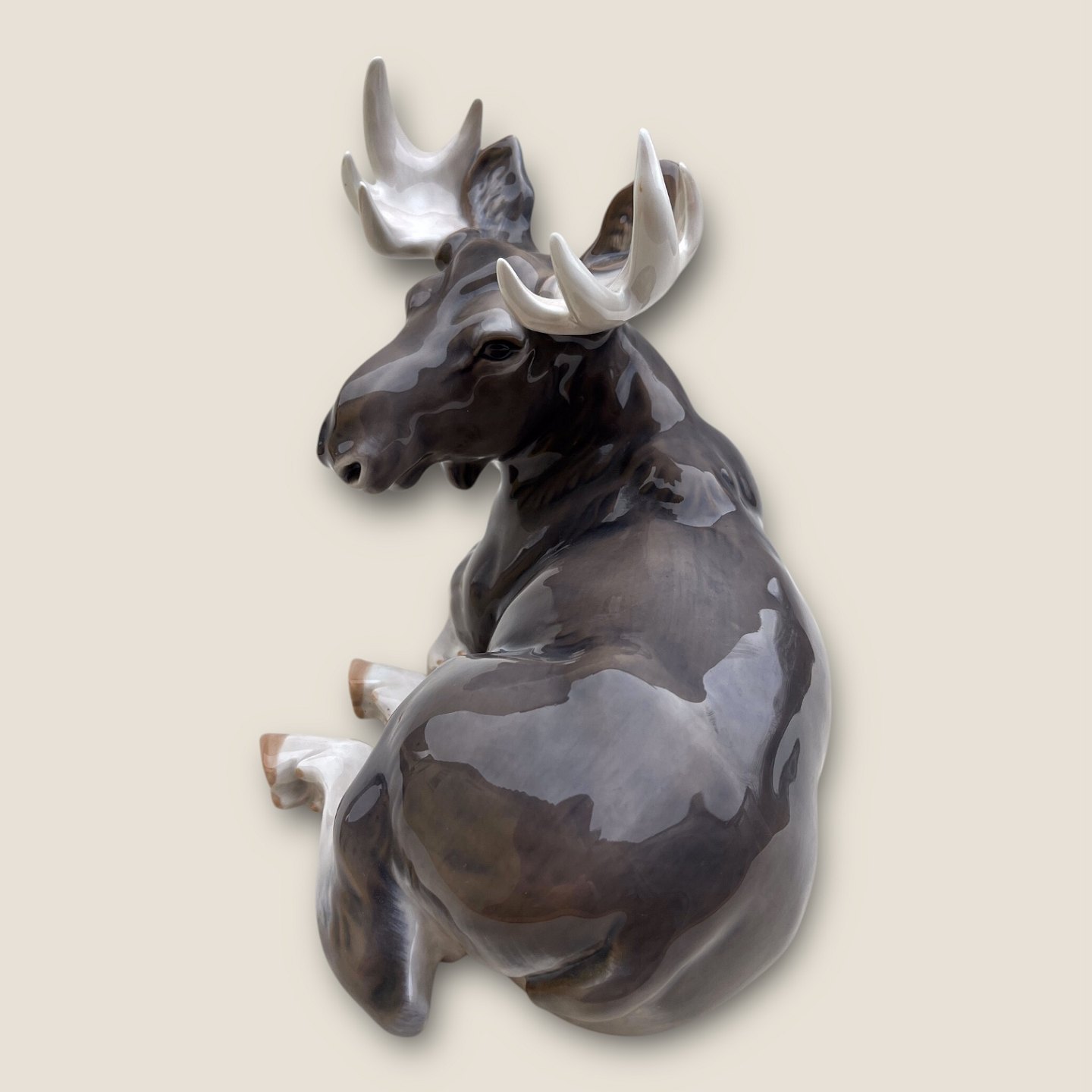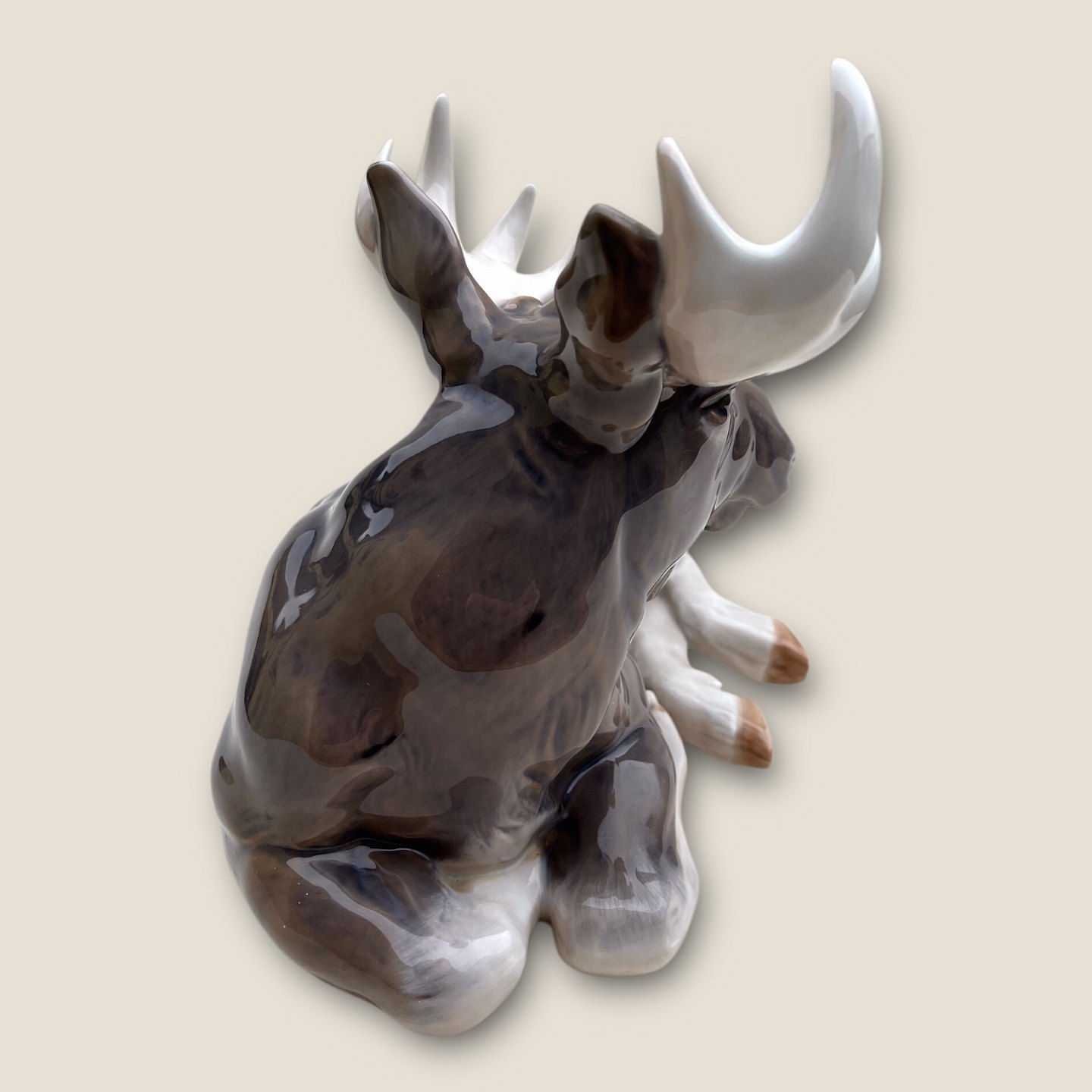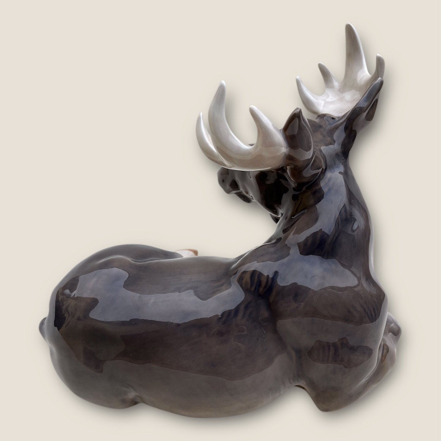Royal Copenhagen, Liggende elg #2813, 25cm bred, 21,5cm høj, 3.sortering, Design Knud Kyhn *Pæn stand med enkelte små glasurfejl*
