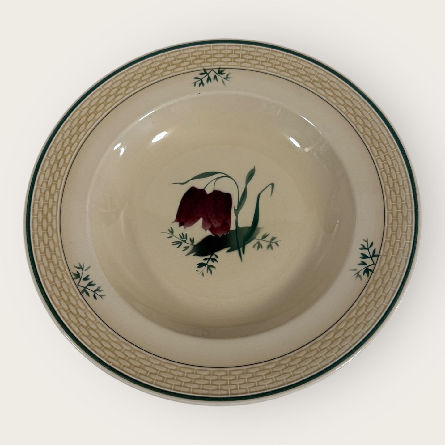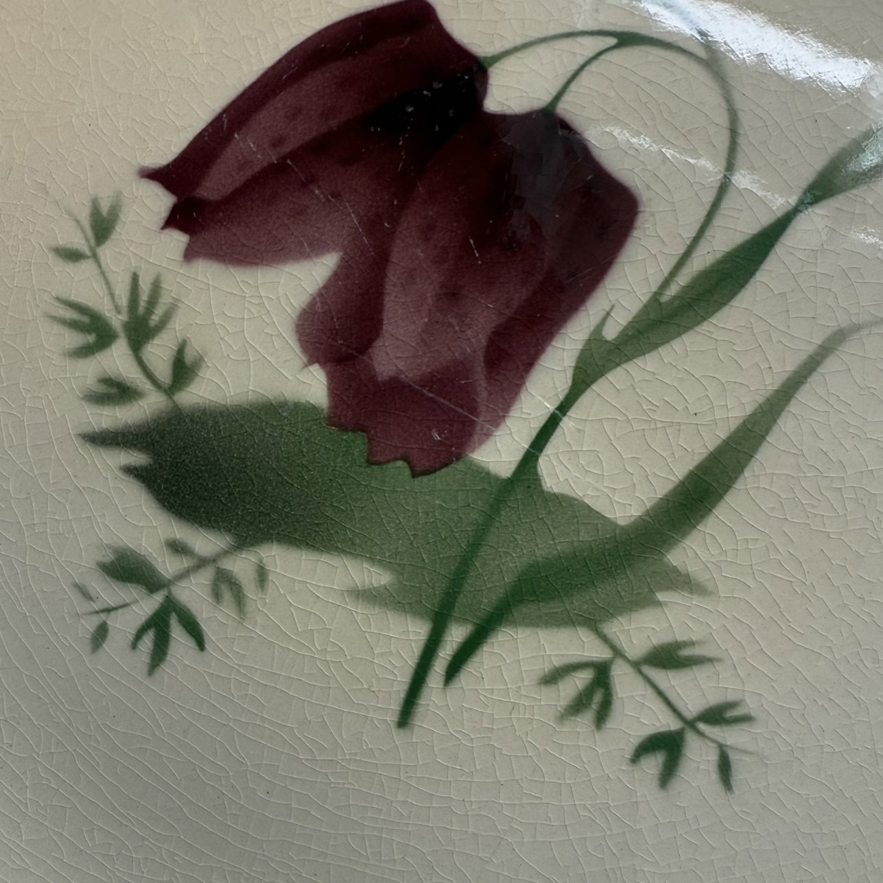 Royal Copenhagen, Aluminia, Victoria II stelform, Vibeæg, Fritillaria meleagris, Lille dyb tallerken, 23 cm i diameter, *pæn brugt stand*