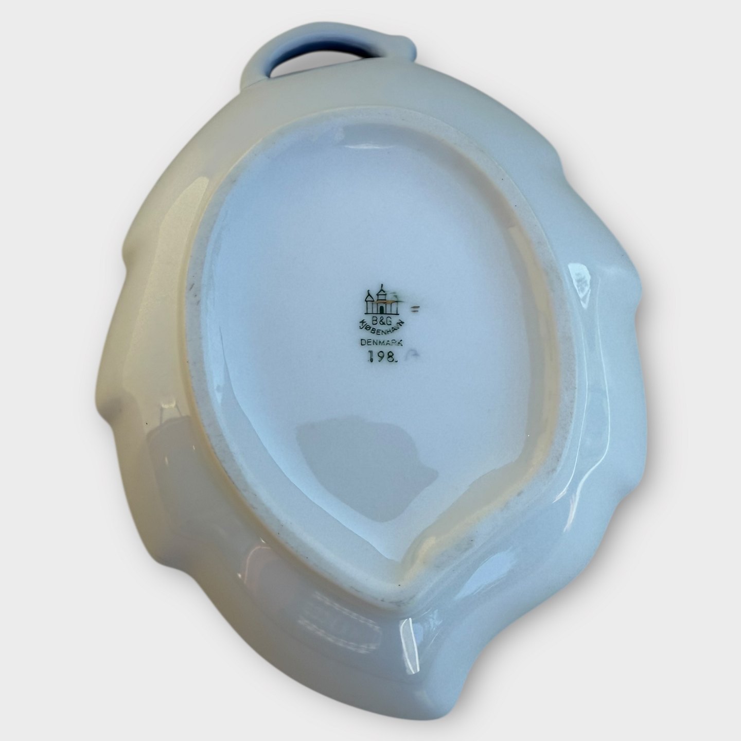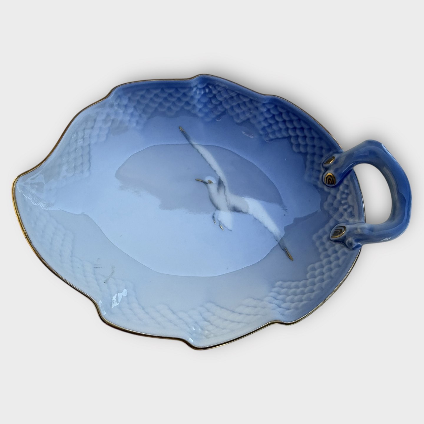 Bing & Grøndahl, Måge med guld, Bladfad #198, 19cm x 14cm, 2. sortering, Design Fanny Garde *Pæn stand*