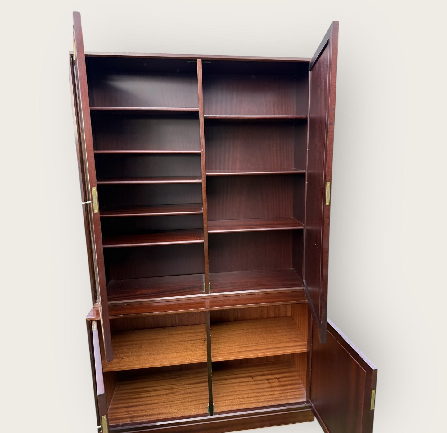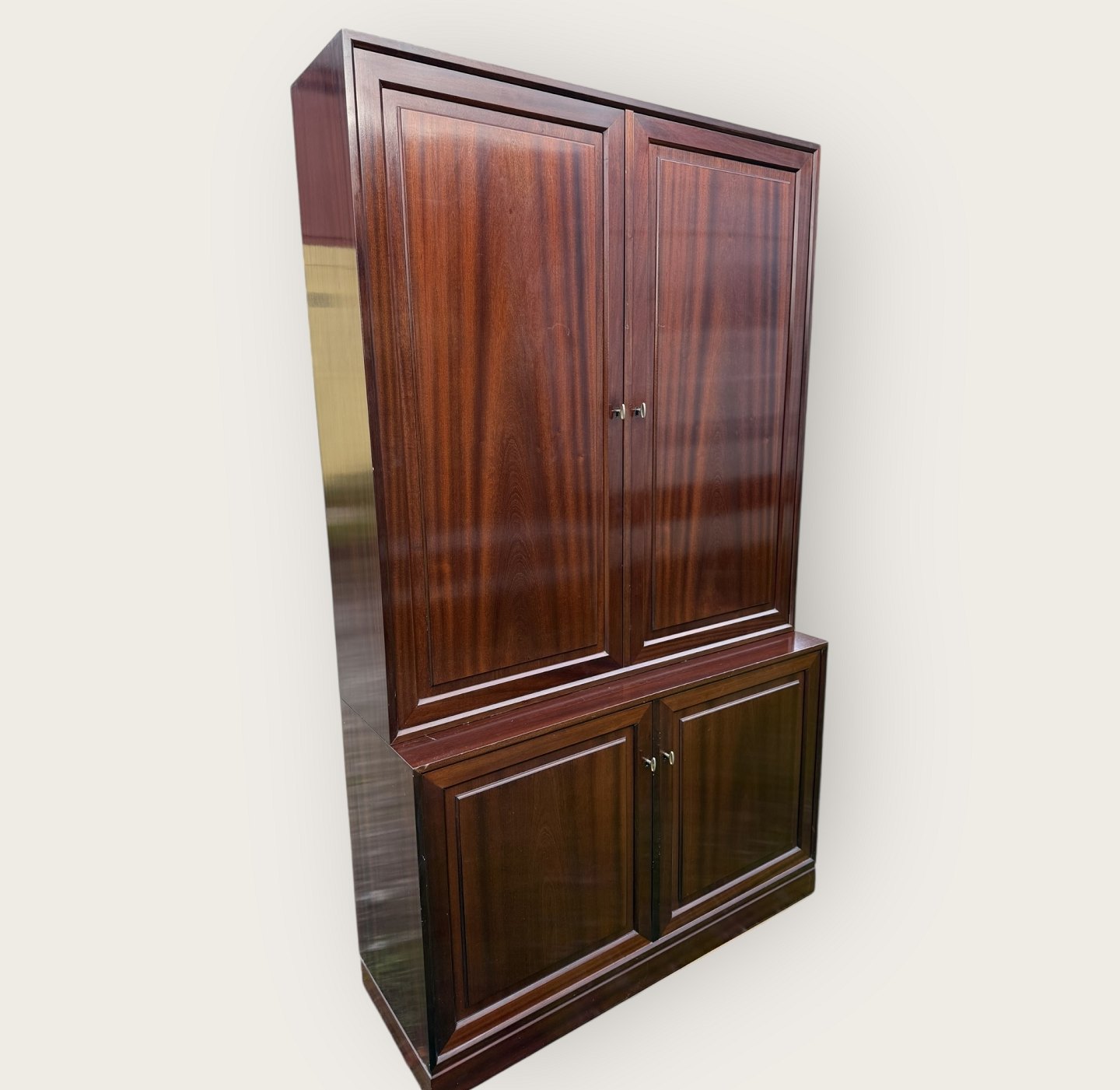 Large spacious cabinet with shelves, mahogany veneer, Dimensions: HxWxD 186x110x38cm *Good condition with some signs of wear*