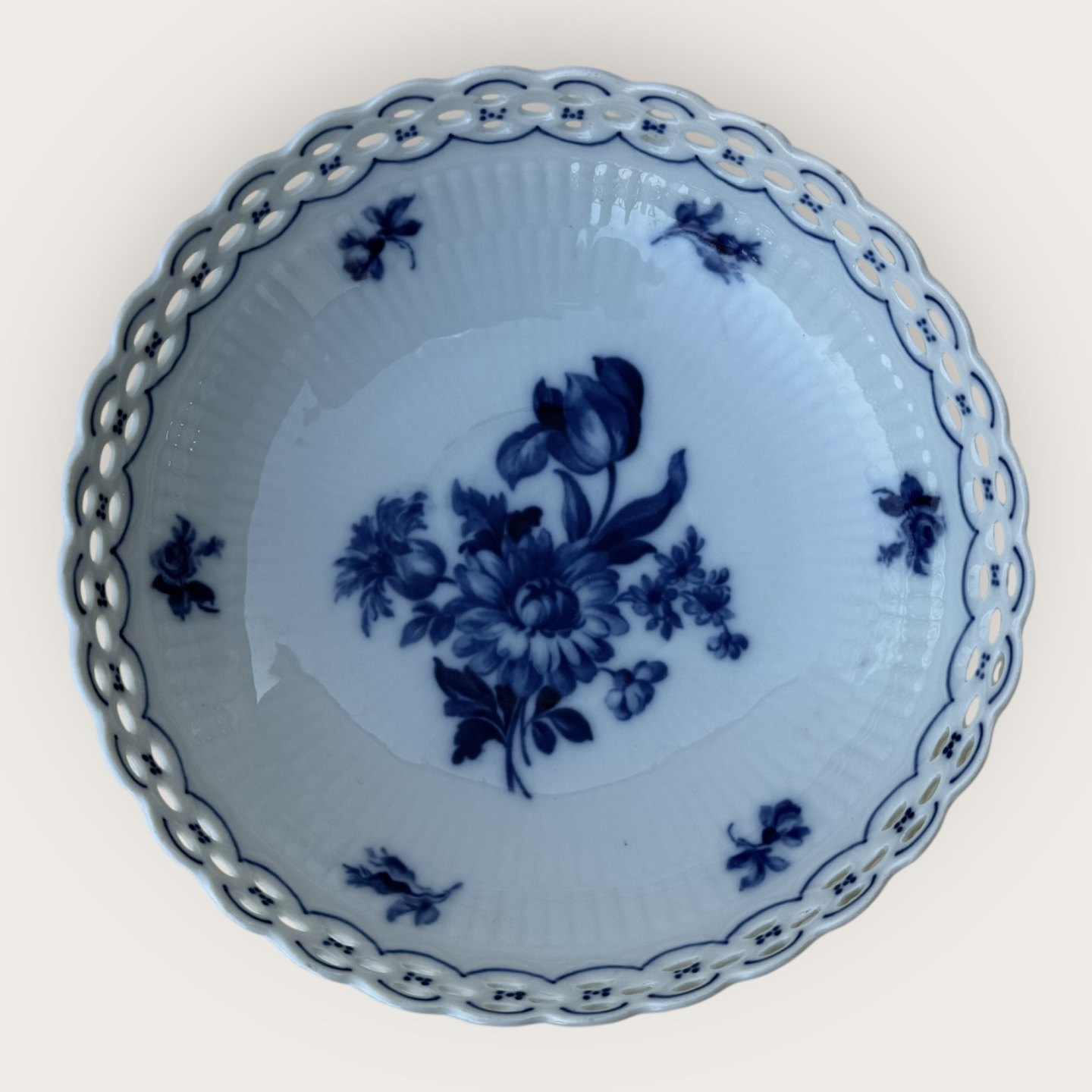 Schumann, Germany, bowl with openwork edge (reticulated) with blue floral decoration, diameter 21cm, height 6cm *fine condition*