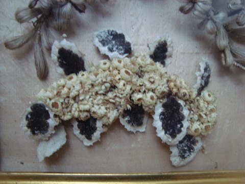 Stor buket lavet af hovedhår, samt en buket lavet af tørrede blomster - alt opsat på silke.