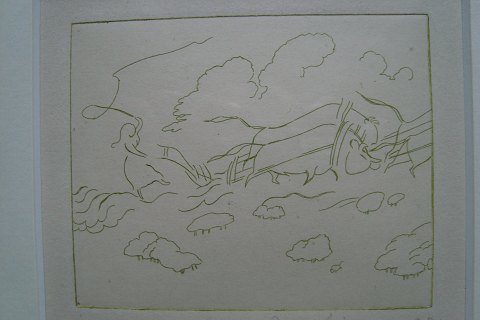 Radering på papir (grønlig).