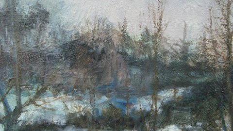 Poul Kastrup (1920-87): Vinterlandskab med træer i mose. Olie på lærred. Sign.: Poul Kastrup 55x65 (72x82)